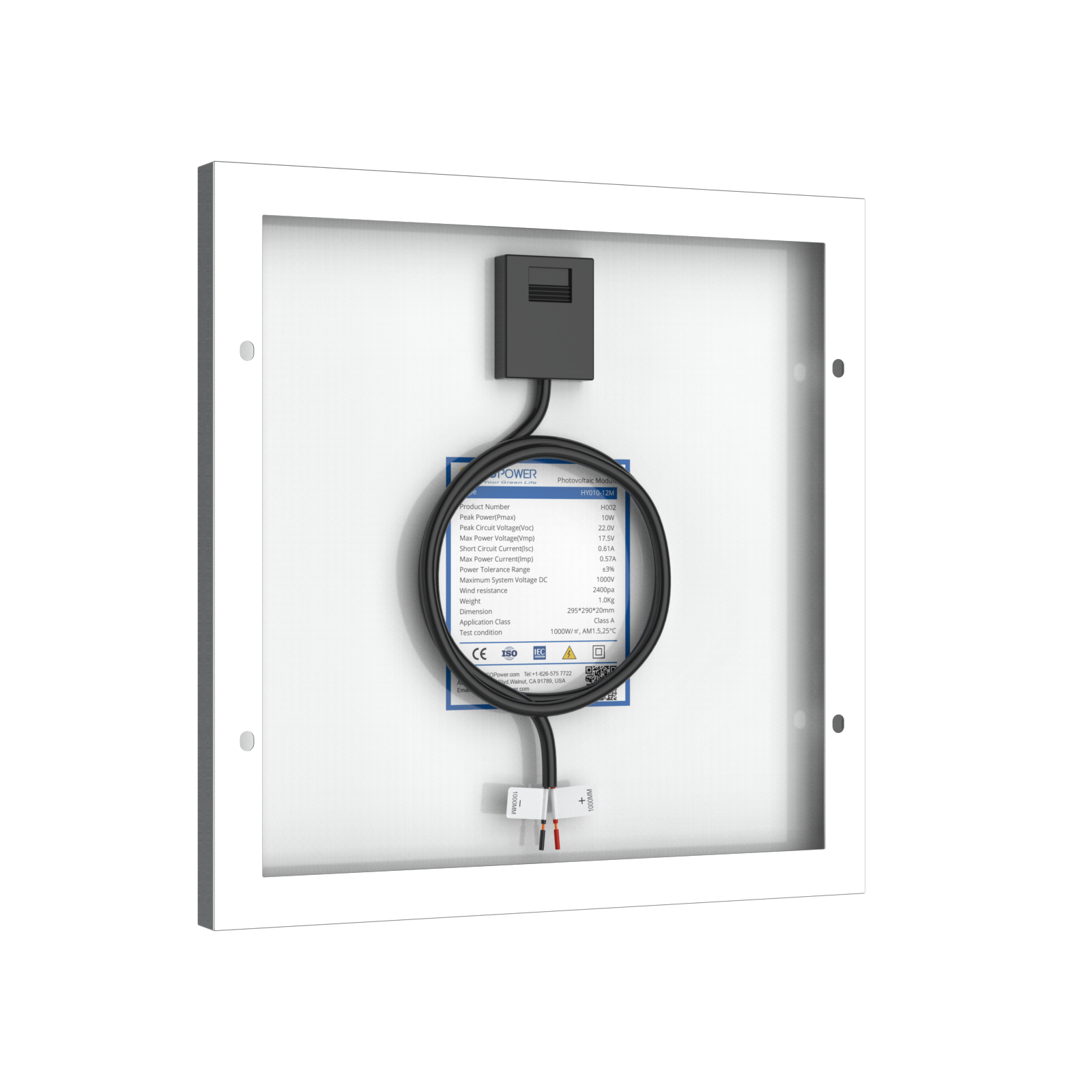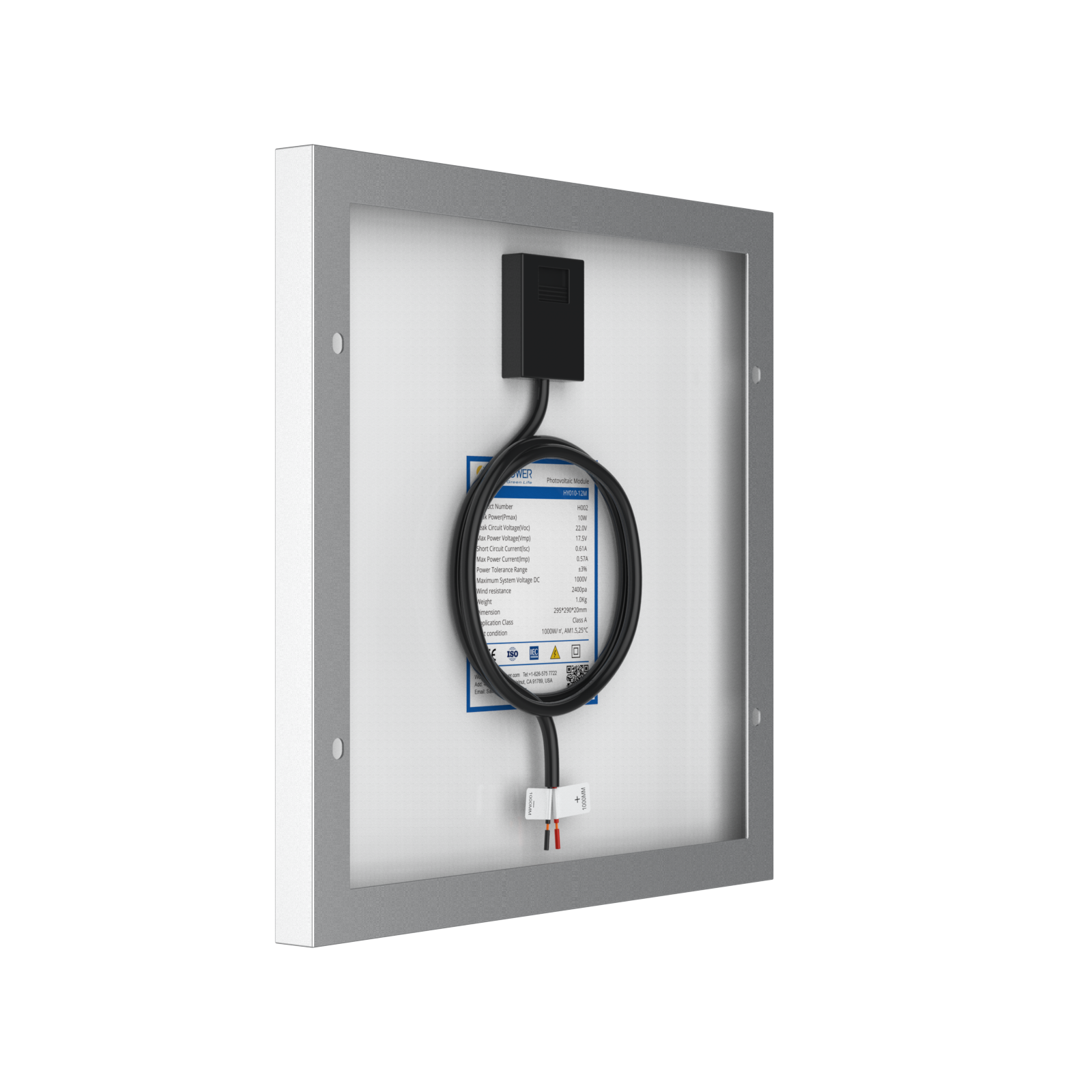 - 10W High Efficiency – A+ monocrystalline cells for 12V battery charging.