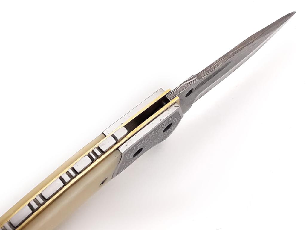 The elegant handle is made using real bone scales. It has been sealed to prevent cracking or drying and preserve the handle for lifetime comes with Under lock folding mechanism.