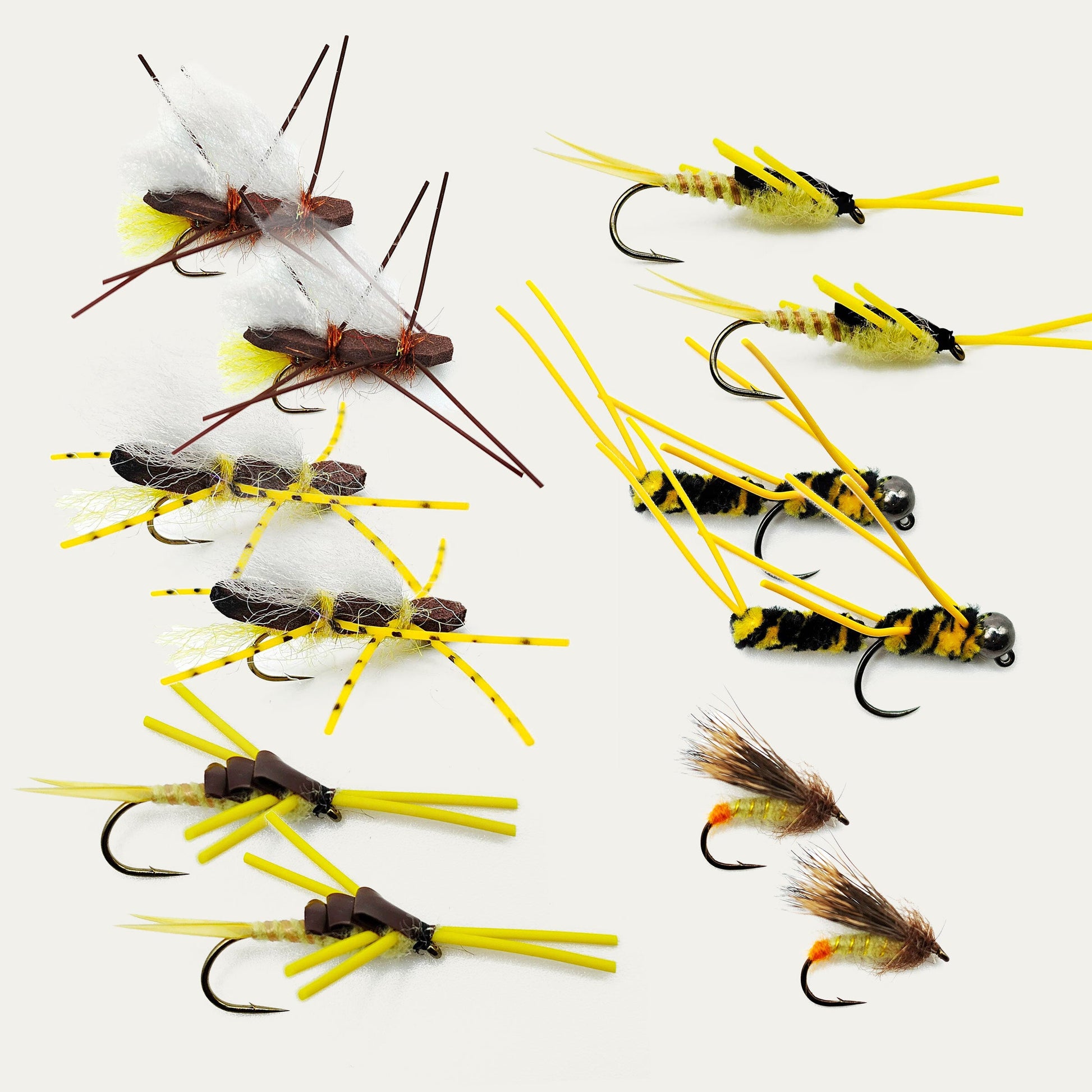 The golden stone & yellow sally hatches lead to some of the best fishing of the year. This fly assortment is curated to help you dial into these hatches and catch more fish. With classic patterns like the pat's rubber leg and yellow sally nymph you'll be set up for success. From adult stones, nymphs, emerging stones, and even spinners, these flies will keep your rod bent.
