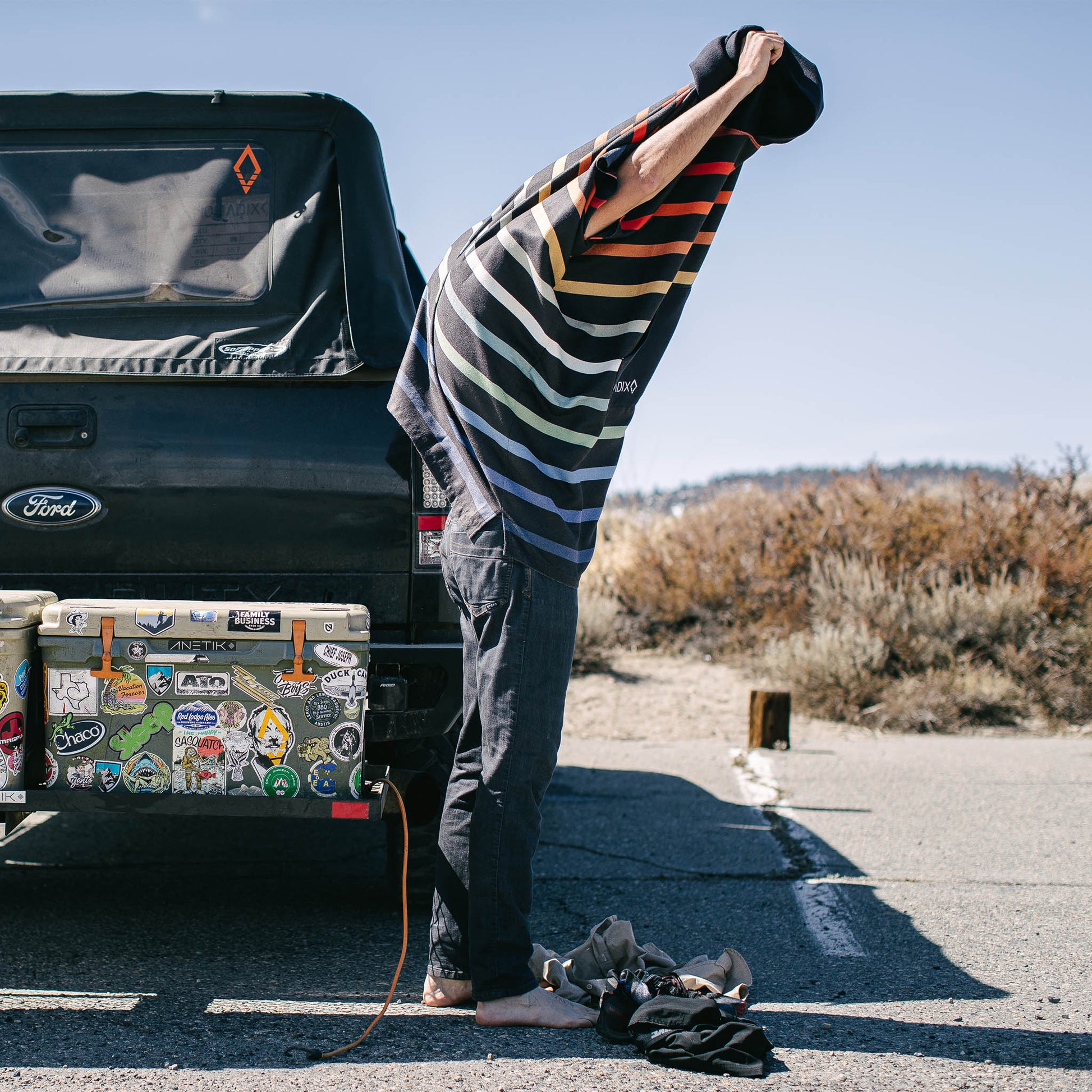Whether you need to change before surfing, after wakeboarding, or just want to cozy up around the fire, the Nomadix Changing Poncho is a versatile, classic poncho that everyone will love. Shop this rainbow-striped changing poncho today.