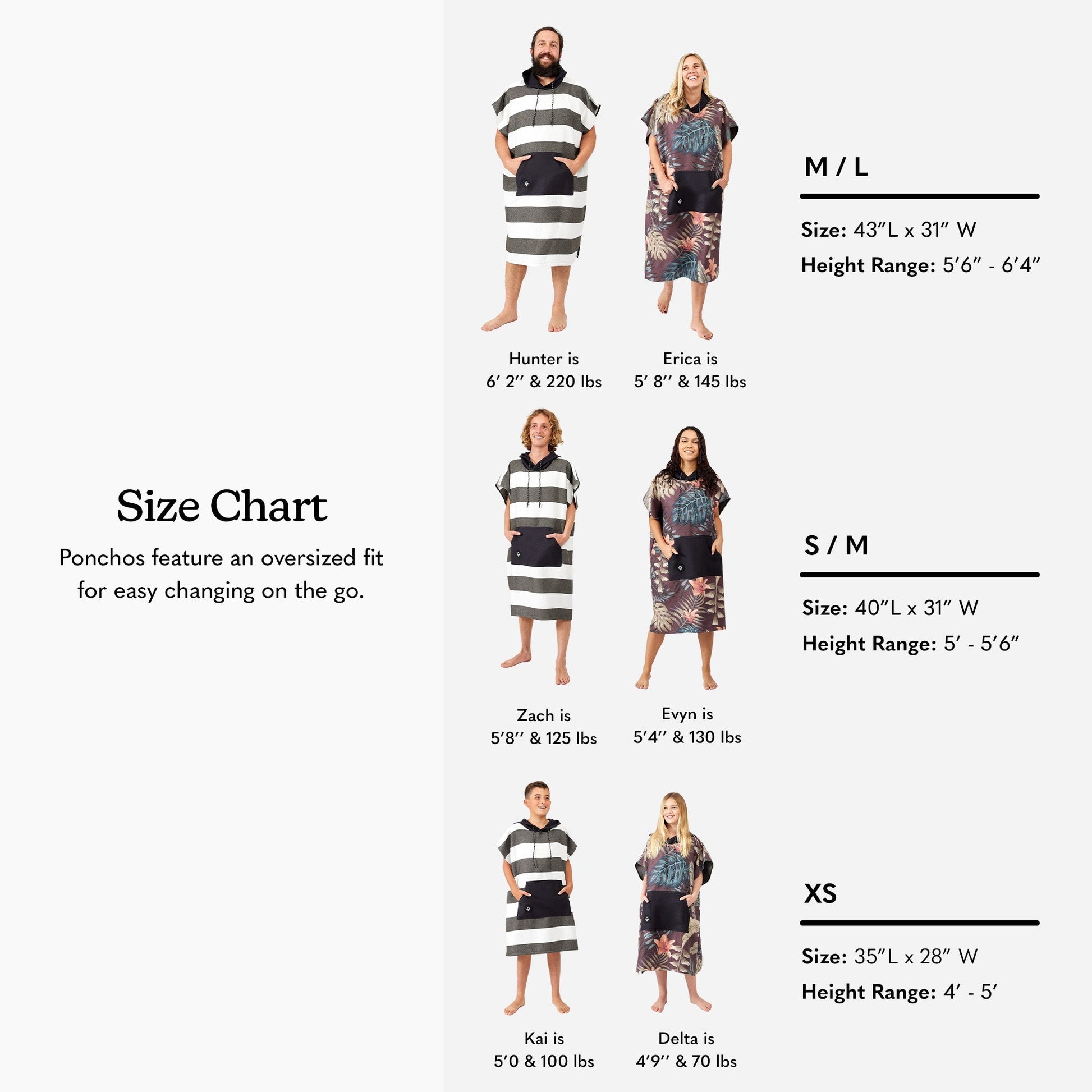 Sizes: M/L 43"L x 31"W | S/M 40"L x 31"W