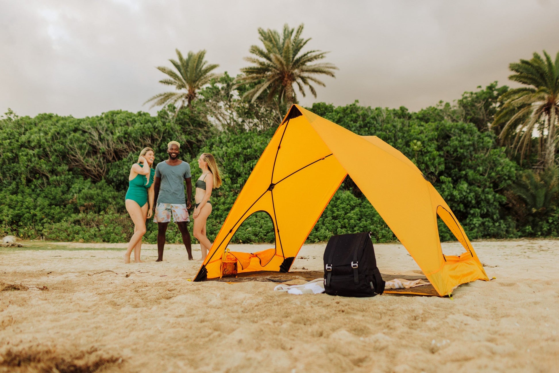 For an easy set up sun shade that lets the breeze flow through, the Pismo A-Frame Portable Beach Tent is your ideal choice. The protection? Top notch! This pop up tent has a UPF 50+ sun protection rating. Set up and take down? Genuinely easy! With a lightweight polyester shell and fiberglass 'wire' frame, this shade tent folds in on itself with the pull of two strings. Add to that a heavy duty moisture resistant floor, two double zippered windows for ample air flow, and a convenient carry bag with shoulder strap, this is the warm weather outdoor accessory you won't know how you lived without. Arriving fully assembled and ready for adventure, the Pismo A-Frame Portable Beach Tent is the easiest way to get safely out in the sun (without totally overheating) we've seen yet.