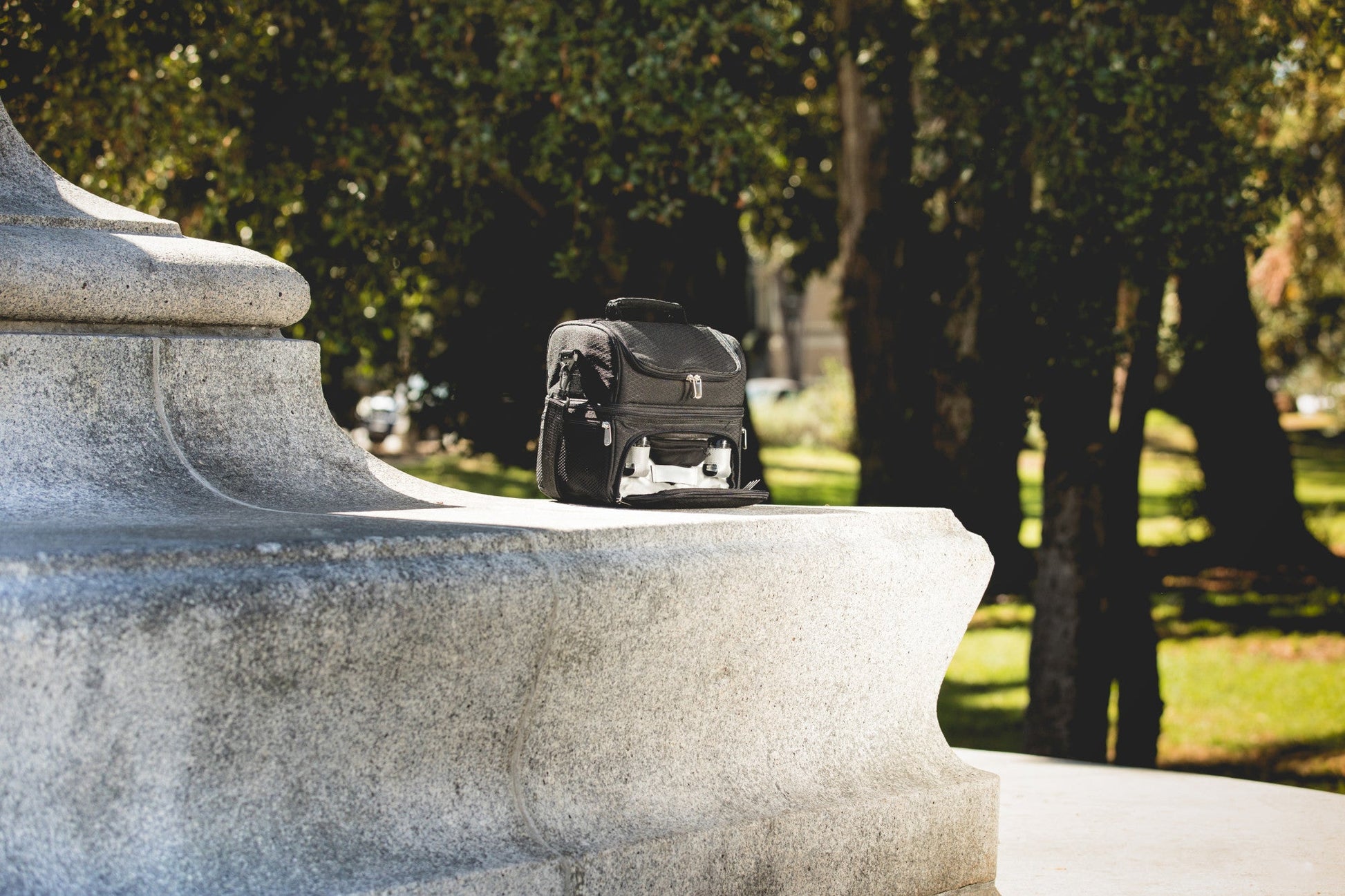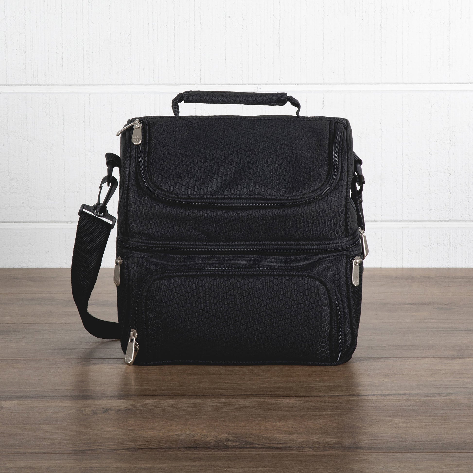 The Pranzo Lunch Bag Cooler with Utensils is a high quality insulated lunch cooler for discerning men and women - after all, no matter your job, you gotta have lunch box! Level up your lunch with this insulated work cooler / lunch bag with top and bottom compartments to separate cold foods from warm/room temperature items. This polyester 8-can-capacity lunch cooler bag with an adjustable shoulder strap and grab-and-go handle also has a secret compartment containing stainless steel silverware, clear plastic salt & pepper shakers, and a 100% cotton napkin. Zippered mesh pockets on each side provide the perfect space for keys, wallets, or other essentials. The Pranzo is the all in one lunch box made for adults!