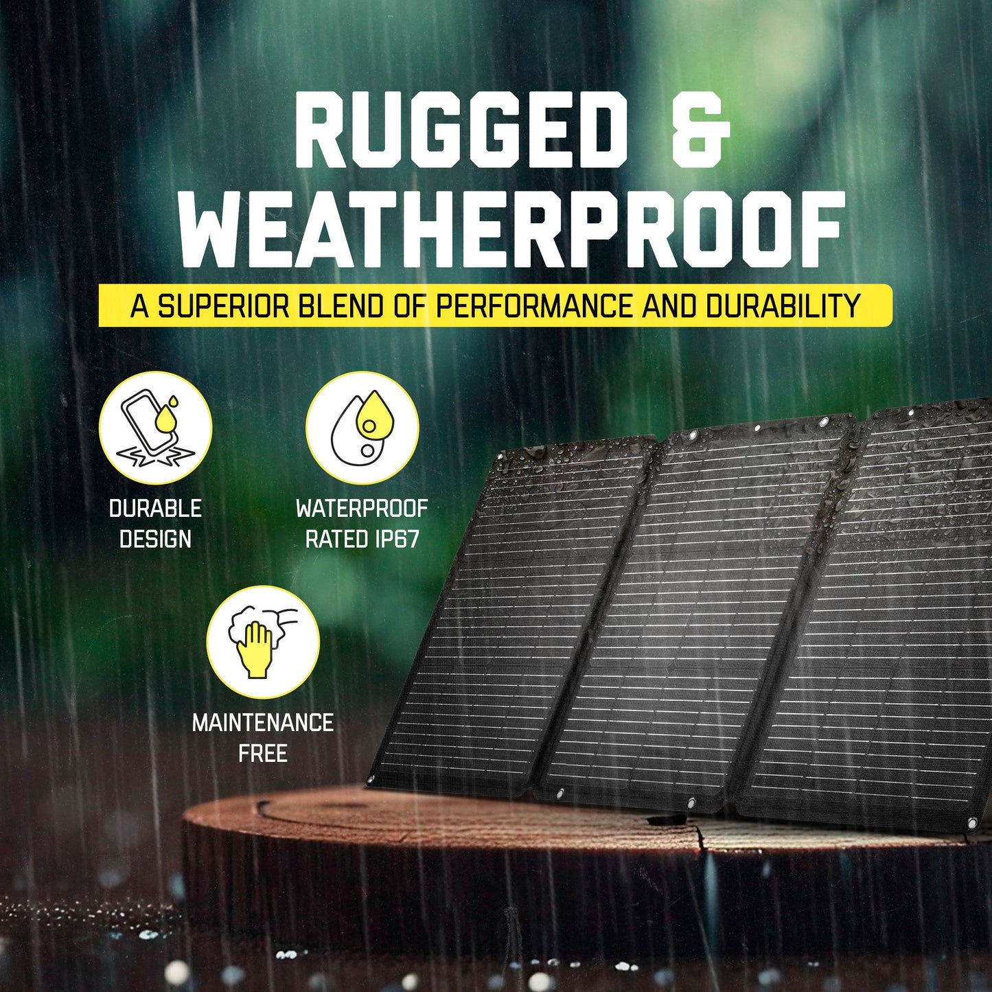 RUGGED, DURABLE & WEATHERPROOF: Designed for the outdoors and all weather conditions, this solar charger is incredibly reliable and built to last. The ETFE exterior layer improves performance and durability, extends the panel’s lifespan and requires minimal maintenance when compared to most solar panels. The MC4 plugs and the solar panel are waterproof rated IP68. The USB ports are coated with a waterproof sealant and rated IP67.