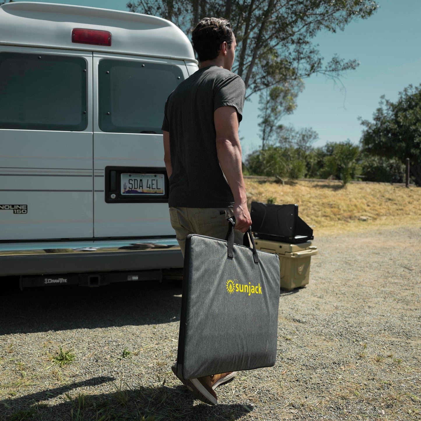 PORTABLE & FOLDING SOLAR PANEL: The 3-panel briefcase design features a compact size when folded and weighs only 11.2lbs. The travel friendly storage bag with handles lets you easily carry and transport the solar charger, making it perfect for traveling, camping or an off-grid adventure. Alternatively, its compact size lets you easily store the solar panel for home power outages, disasters and emergency preparation. The bag’s pocket provides storage space for electronics and accessories.