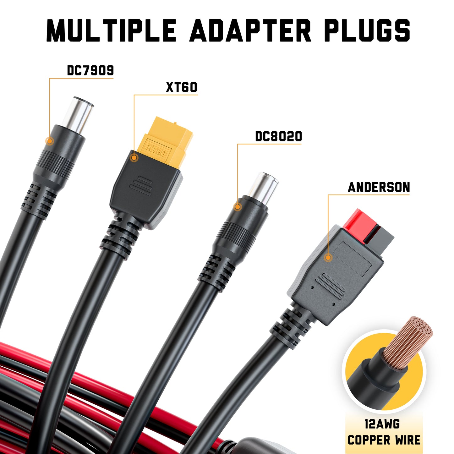 • WIDE COMPATABILITY: This solar extension cable connects a solar panel with MC-4 output cables to a solar generator or portable power station with a XT60, Anderson, DC 7909 or DC 8020 (8mm) input port.
