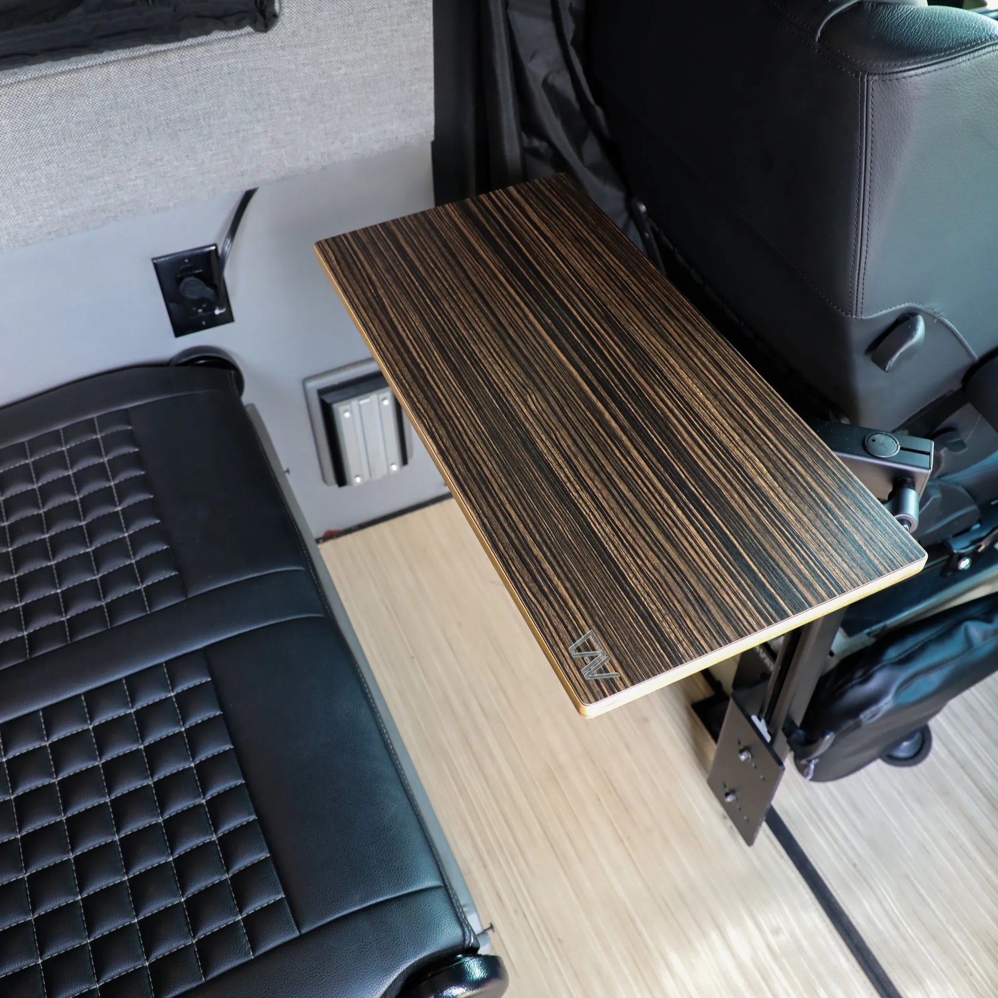 Meet the perfect companion for your van adventures, no matter if you're driving a Van Revel, Storyteller, Jayco, Entegra, or a Sprinter. Our tables are here to add that extra touch of home and functionality to your journeys. Choose from five beautiful finishes, each one crafted to not only look great but to last through all your travels. We know every van is unique, so we've made sure our tables easily fit with both the Lagun system and pedestals, thanks to handy threaded inserts. Whether you're sharing a meal, plotting your next route, or just need a sturdy place to rest your coffee cup, these tables are your go-to.