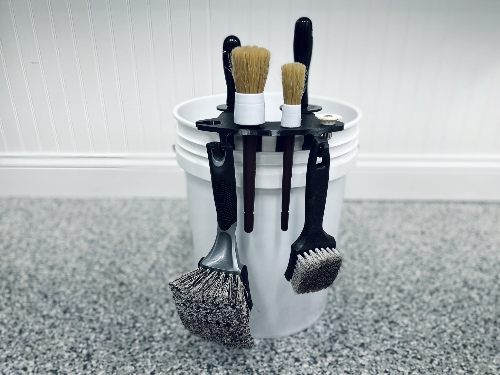 The BucketCaddy is the perfect accessory to mount all of your favorite wheel, tire, & detailing brushes to the lip of any 5-gallon or 6-gallon bucket! Tired of fumbling through your wash bucket trying to find the right brush? With the BucketCaddy, all of your brushes are now nicely organized and easily accessible! It's also great for storing your brushes when not in use allowing them to safely air dry after each car wash.