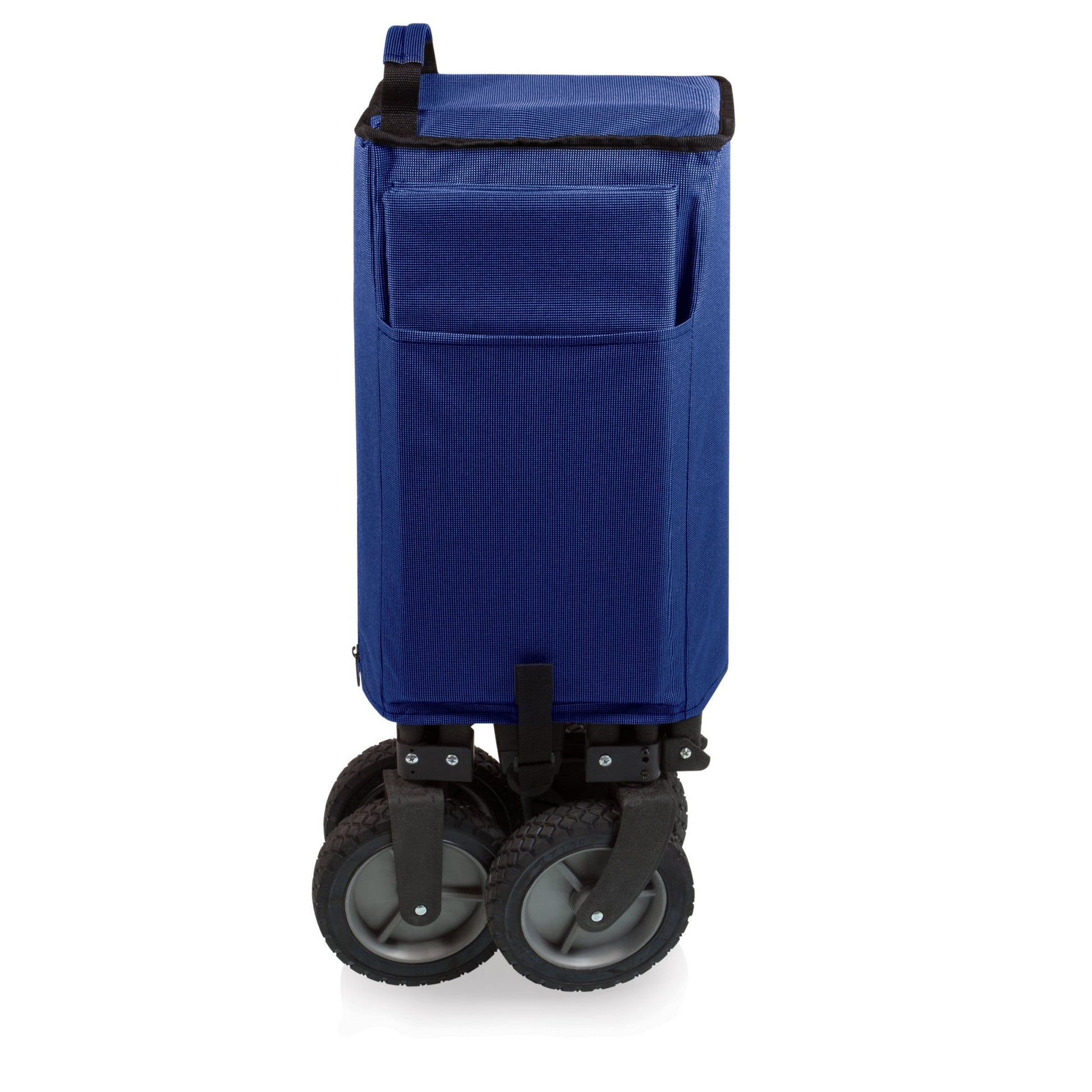 Save your back with the Adventure Wagon Folding Wagon, a sturdy utility wagon with endless uses and a rugged 225 lb weight capacity. With a powder-coated steel frame and durable two-tone polyester canvas for hauling everything you need, this all terrain folding collapsible wagon can take you everywhere from beach picnics to camping to shopping for groceries at your local farmer’s market. This beach wagon packs away compactly, sets up easily, and has a telescoping handle for ease of use. A zippered, hanging storage pocket inside the cart is perfect for your phone and other delicate items. Is there anywhere this sport utility wagon can’t go?! Well, we can't think of anywhere!