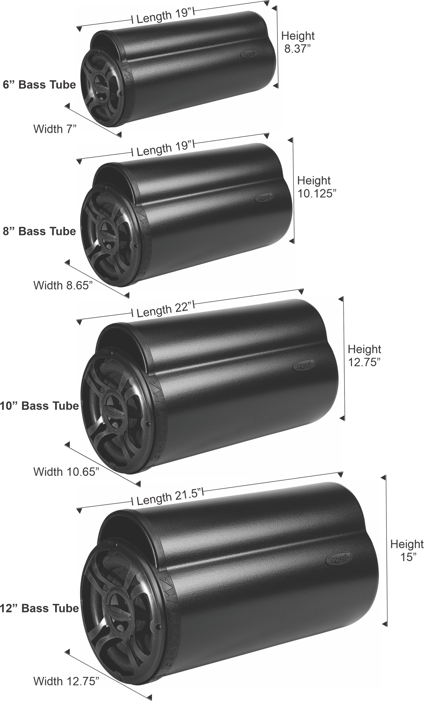 Our 10” Amplified Bass Tubes are high power handling woofers that are highly efficient thanks to the Bass Tubes enclosure, and they’re our biggest and baddest ones yet. They are optimized for corner loading, so you can fully enjoy all that bass! They have a 100-watt or 250-watt amplifier and variable gain control as well as variable 50-250Hz crossover (BTA/MBTAxx250D versions only). For secure mounting and easy removal, we’ve included mounting straps, too.