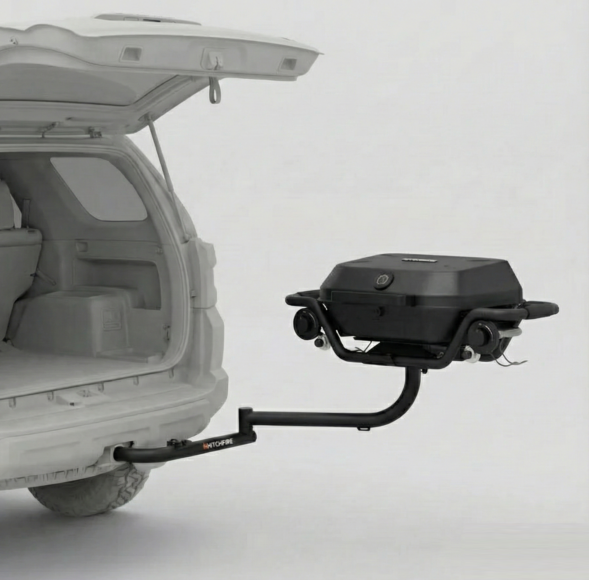 Mounts to the HitchFire swing-arm so your trunk stays open for coolers, bags, chairs, and everything else.