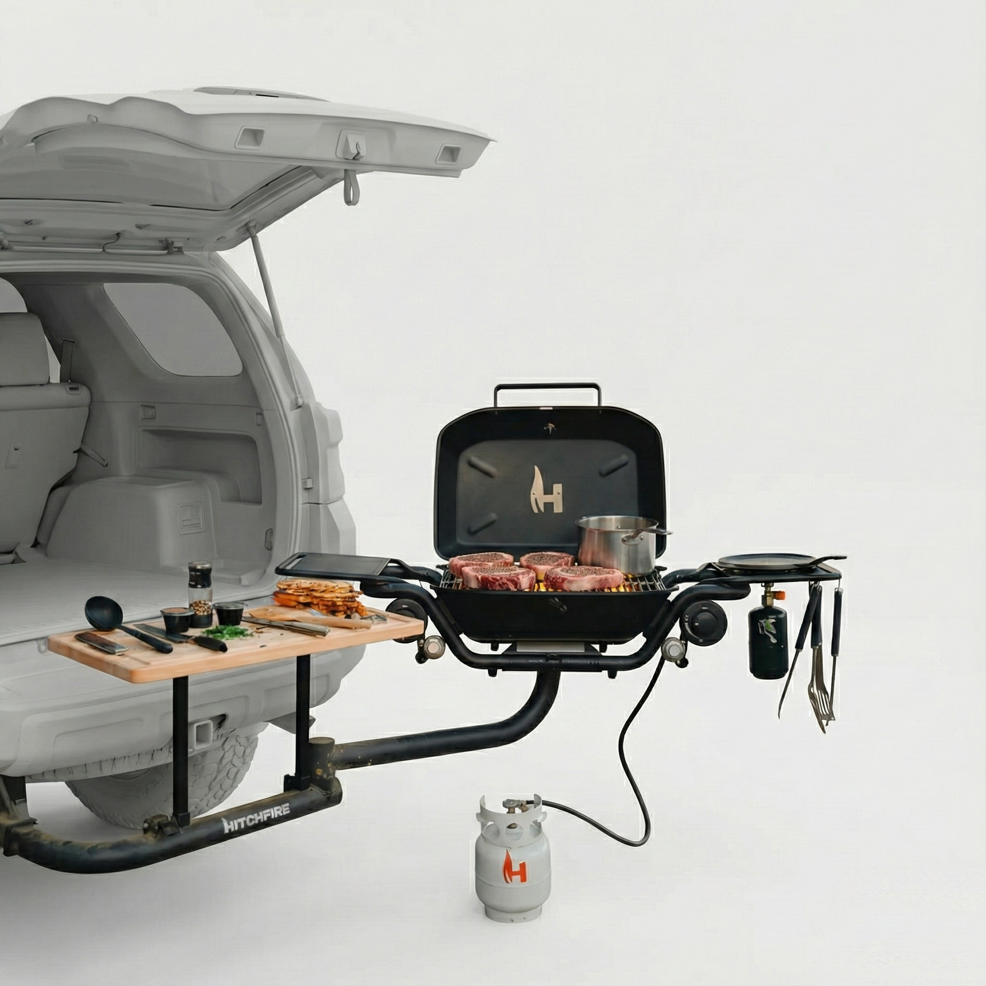 No more shuffling gear around the trunk or dealing with flimsy portable grills. The F-20 frees up cargo space, cuts setup time to seconds, and makes cooking an actual part of the adventure — not a chore.