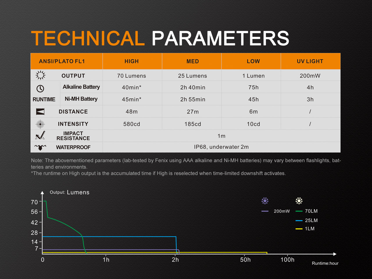 The Fenix LD02 V2.0 is a first-rate EDC penlight, featuring 70 Lumens of warm white light and 200mW UV light. This improved model boasts a petite size of 3.6"x0.5" and weighs just 0.84 ounces. Its Cree XQ-E HI LED provides great color rendering for preserving night vision, as well as accurate color rendering. With one AAA battery, it powers up to 75 hours at 1 Lumen. The stainless steel tail switch manages activation and increases output, and the IP68-rated construction withstands submersion up to 6.5 feet. Get this remarkable EDC penlight now!