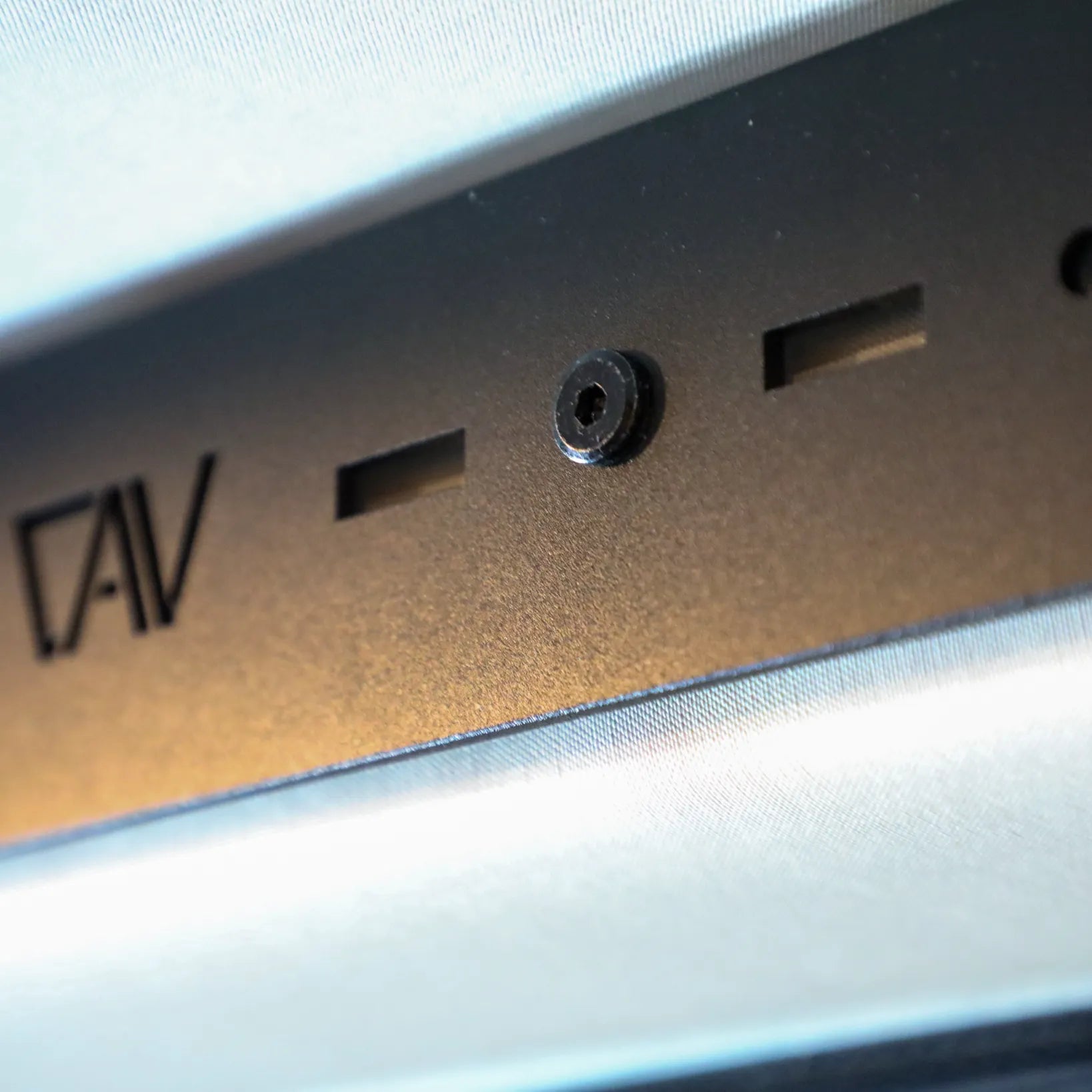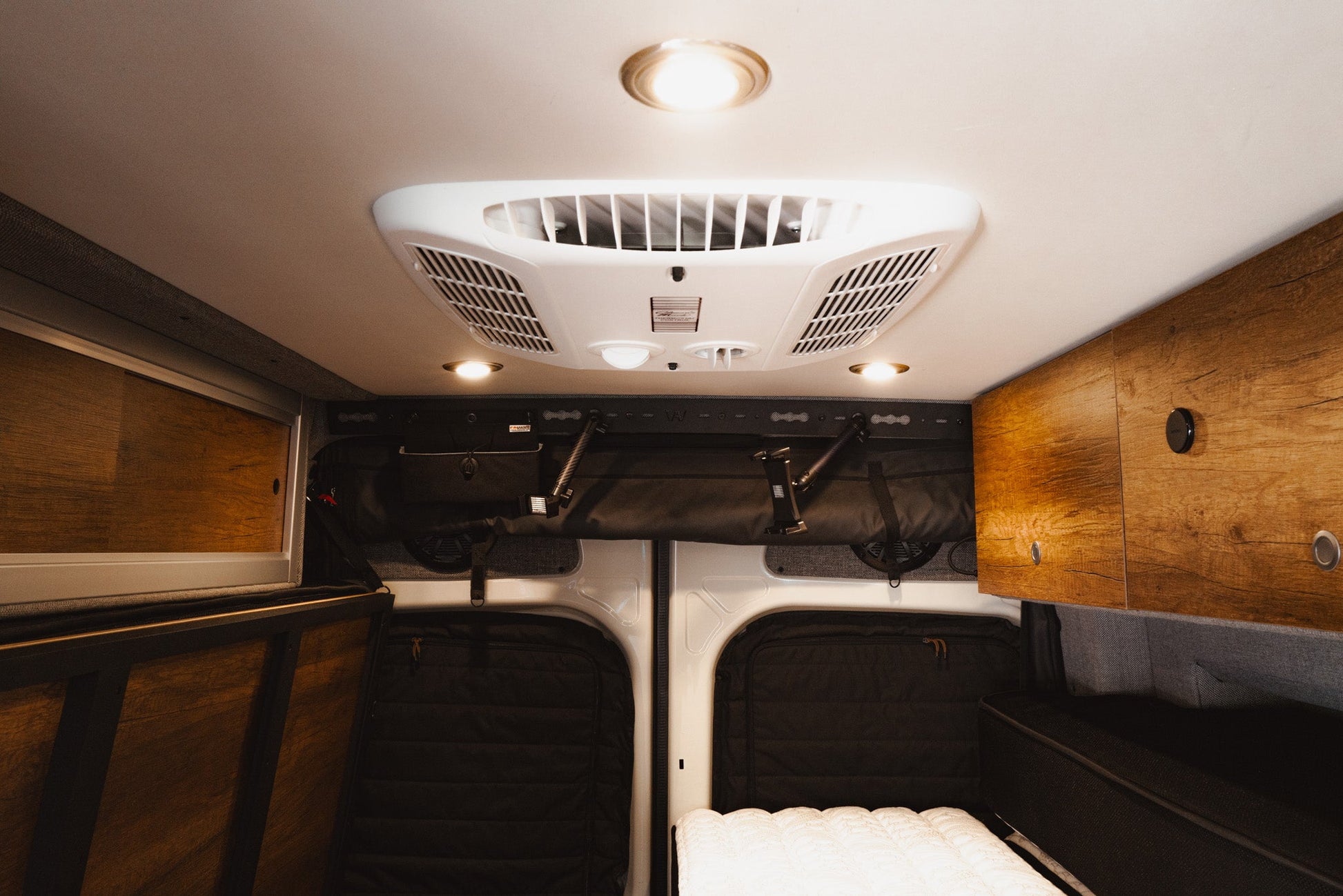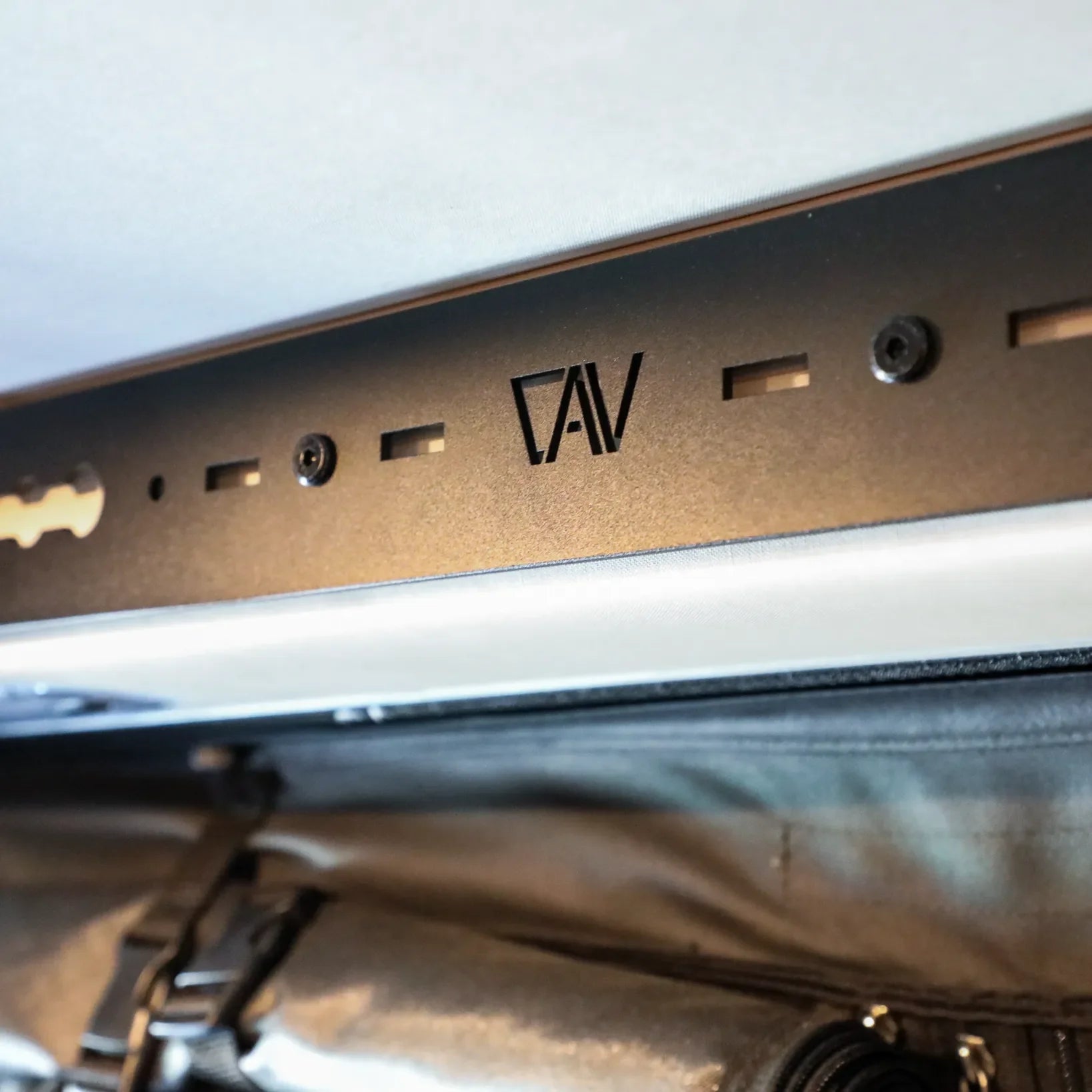 Upgrade the storage and versatility of your Storyteller MODE van with the L-Track PRO System for the overhead sliding door area. This premium L-Track solution is designed specifically for Storyteller MODE, providing you with additional hanging storage and a matching adjustable mirror above your slider door.