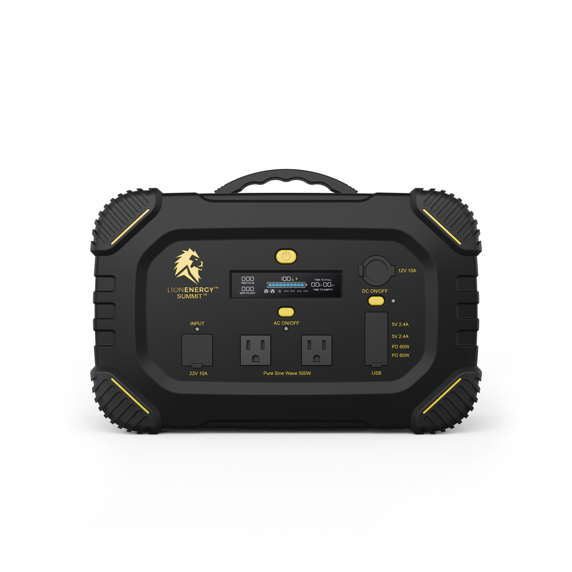 The Lion Energy Summit™ is a portable solar powered generator that provides safe, silent, and renewable power for your cooking, communication, entertainment, CPAP, work, and emergency needs. No fuel or maintenance required. With 530W of output, multiple outlets and ports, and weighing only 18 lbs, you can have power at your fingertips, wherever you are.