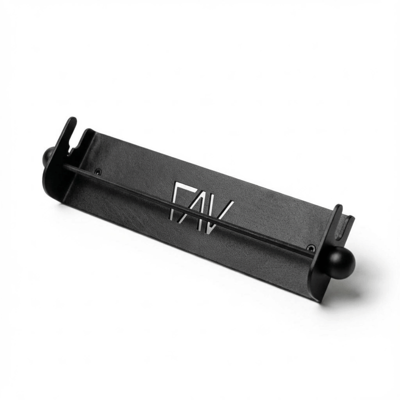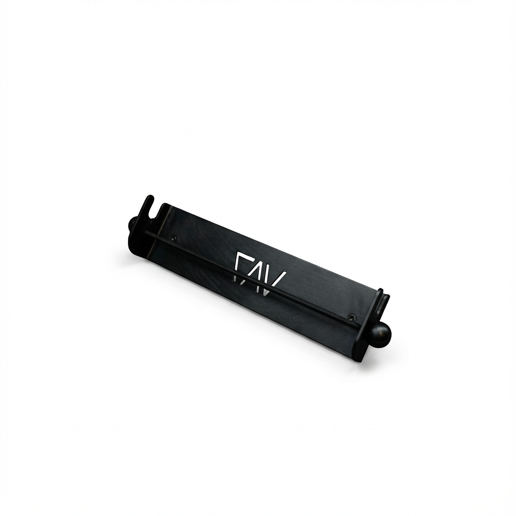 A reposition-able magnetic mount that secures skis or a snowboard to the outside of your van. The metal base uses strong rare-earth magnets to hold to ferrous (magnetic) metal panels while an adjustable bungee keeps your gear snug during travel. Move the mount to different panels as needed and remove it when not in use.