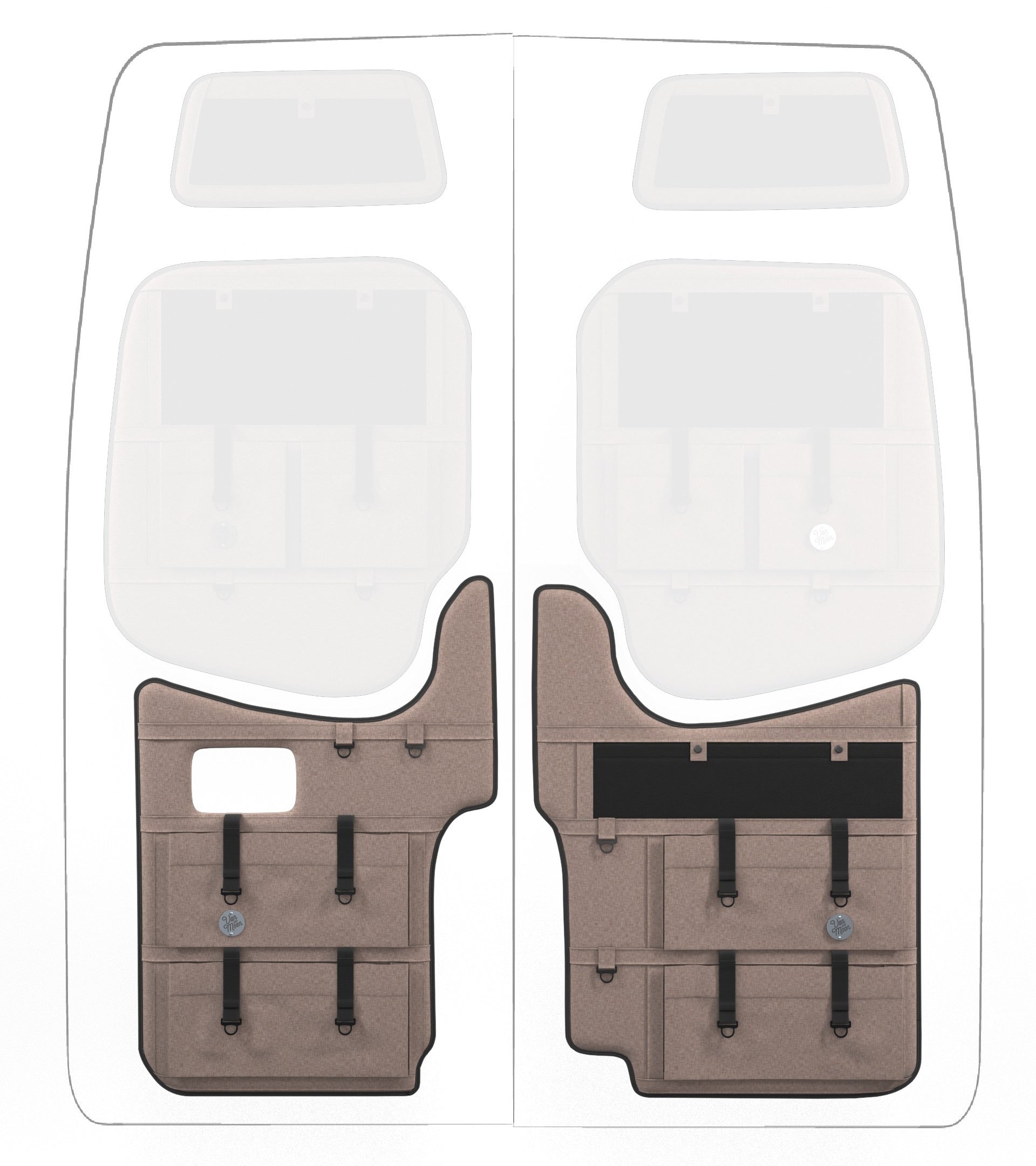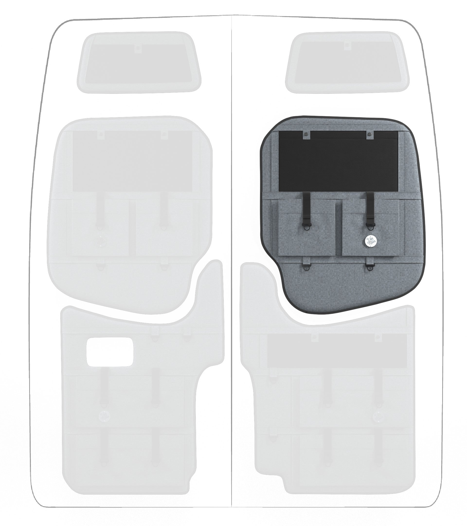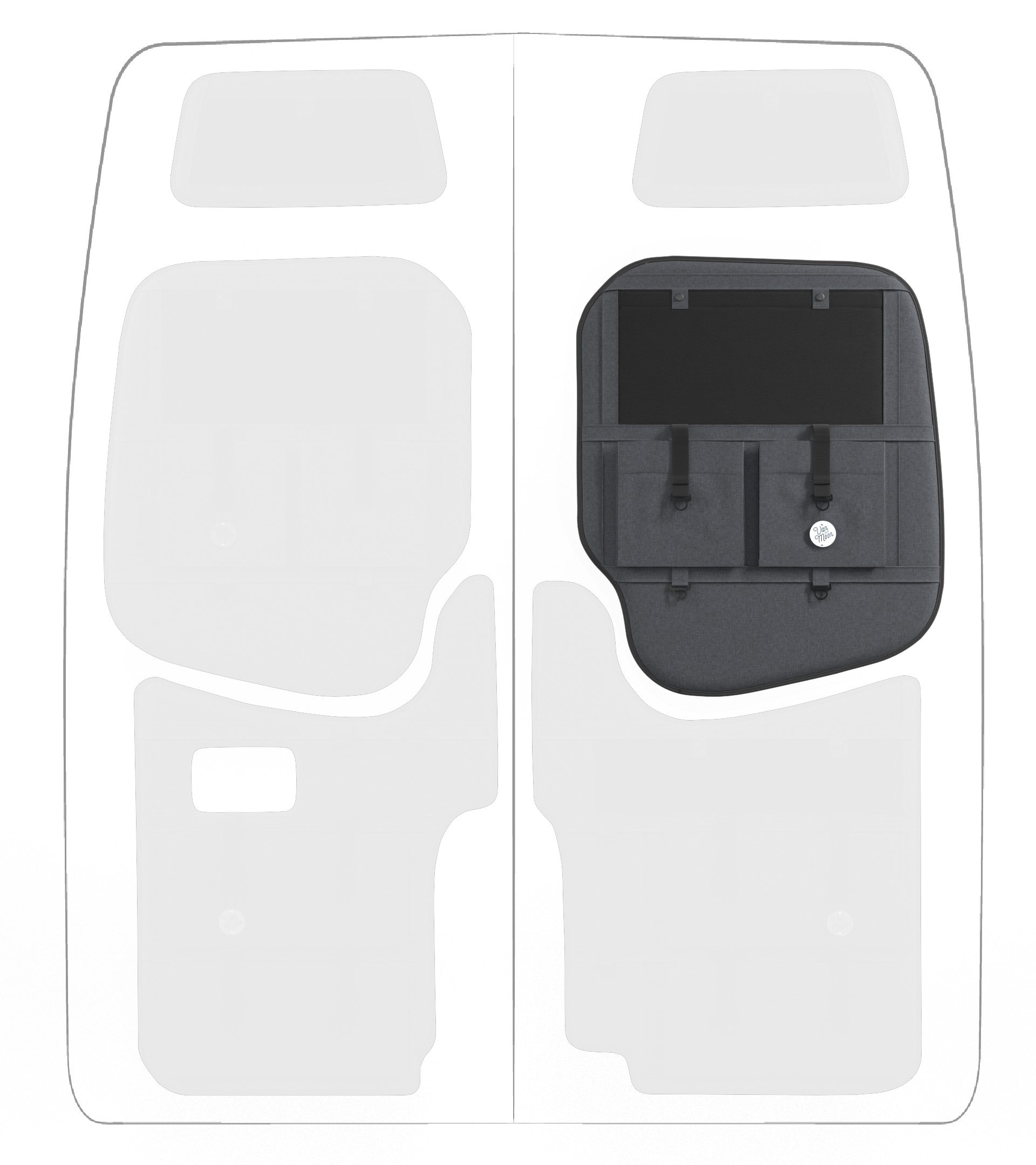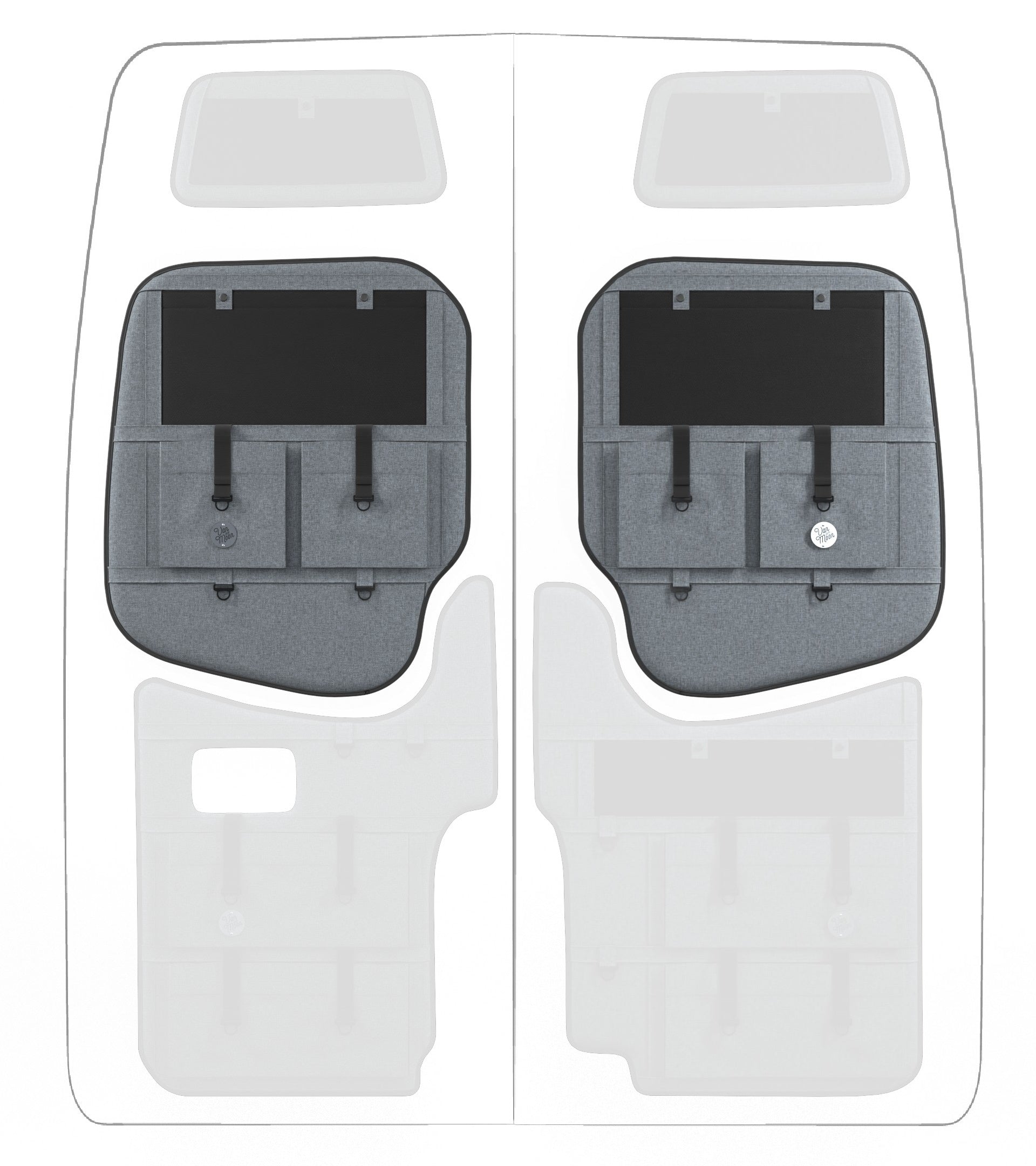 Storage in a van is limited, so why not use your rear doors to expand your space and keep organized? Van Der Moon rear door organizers use a previously ignored space to add functionality and style to your adventure van!