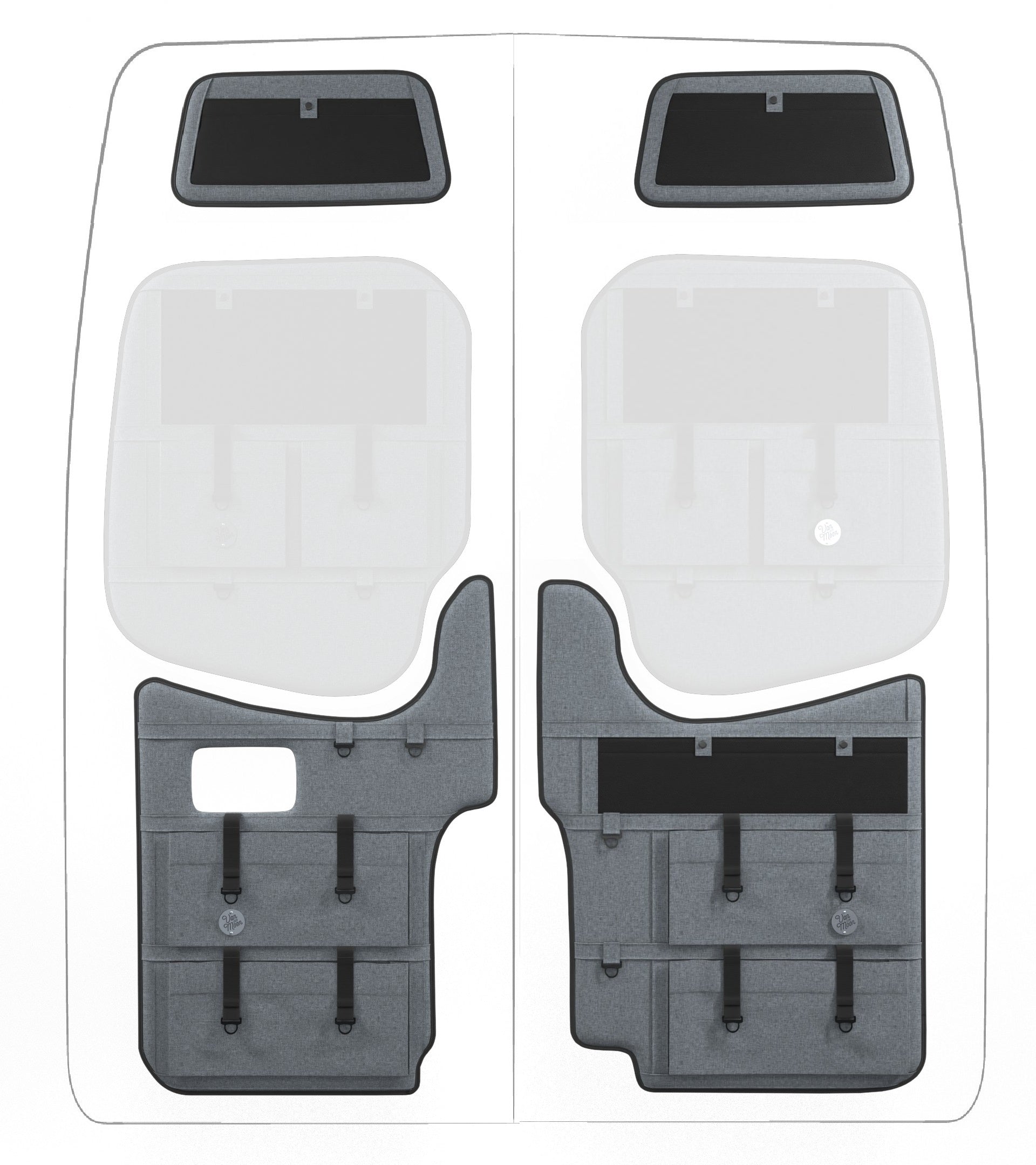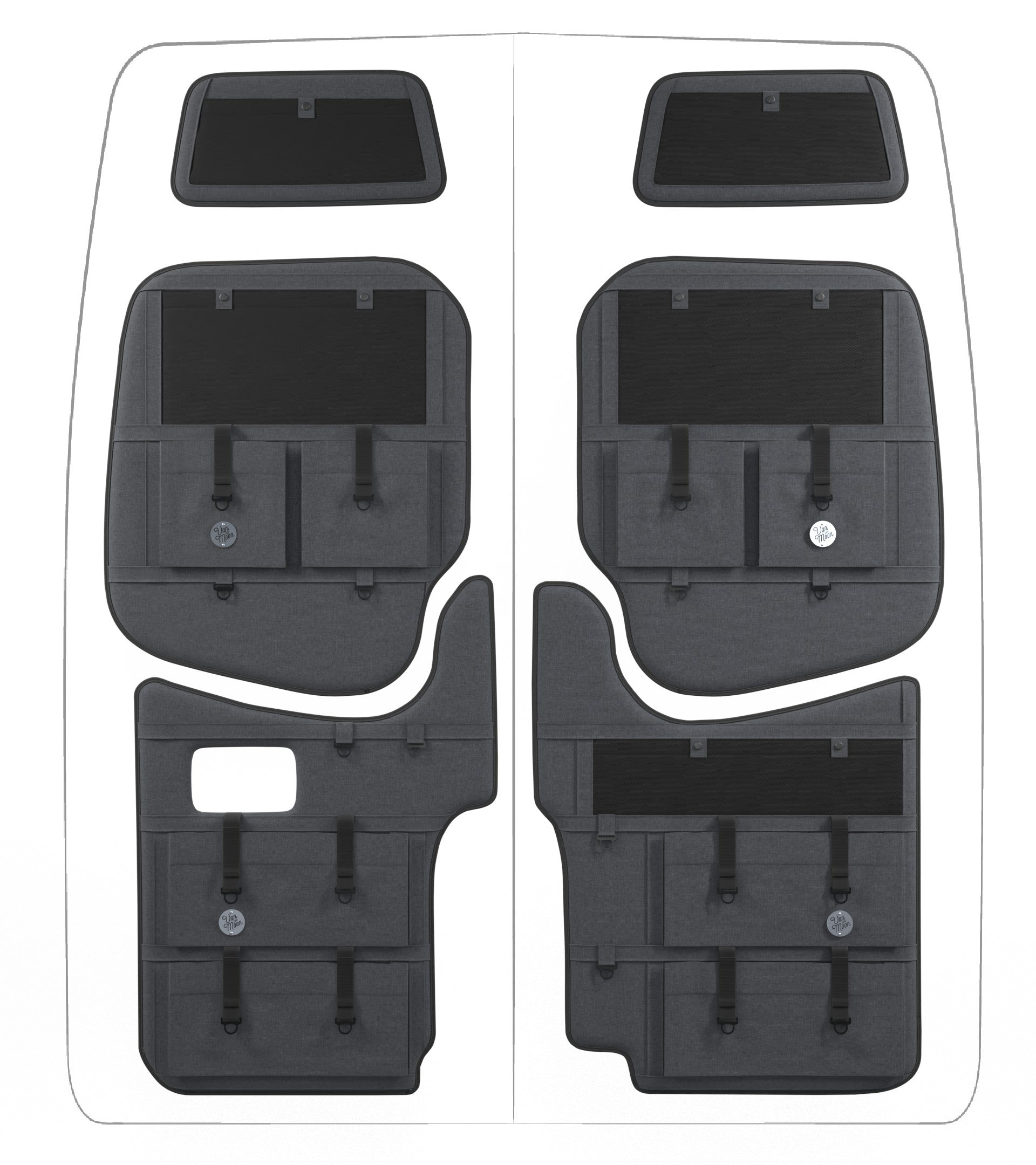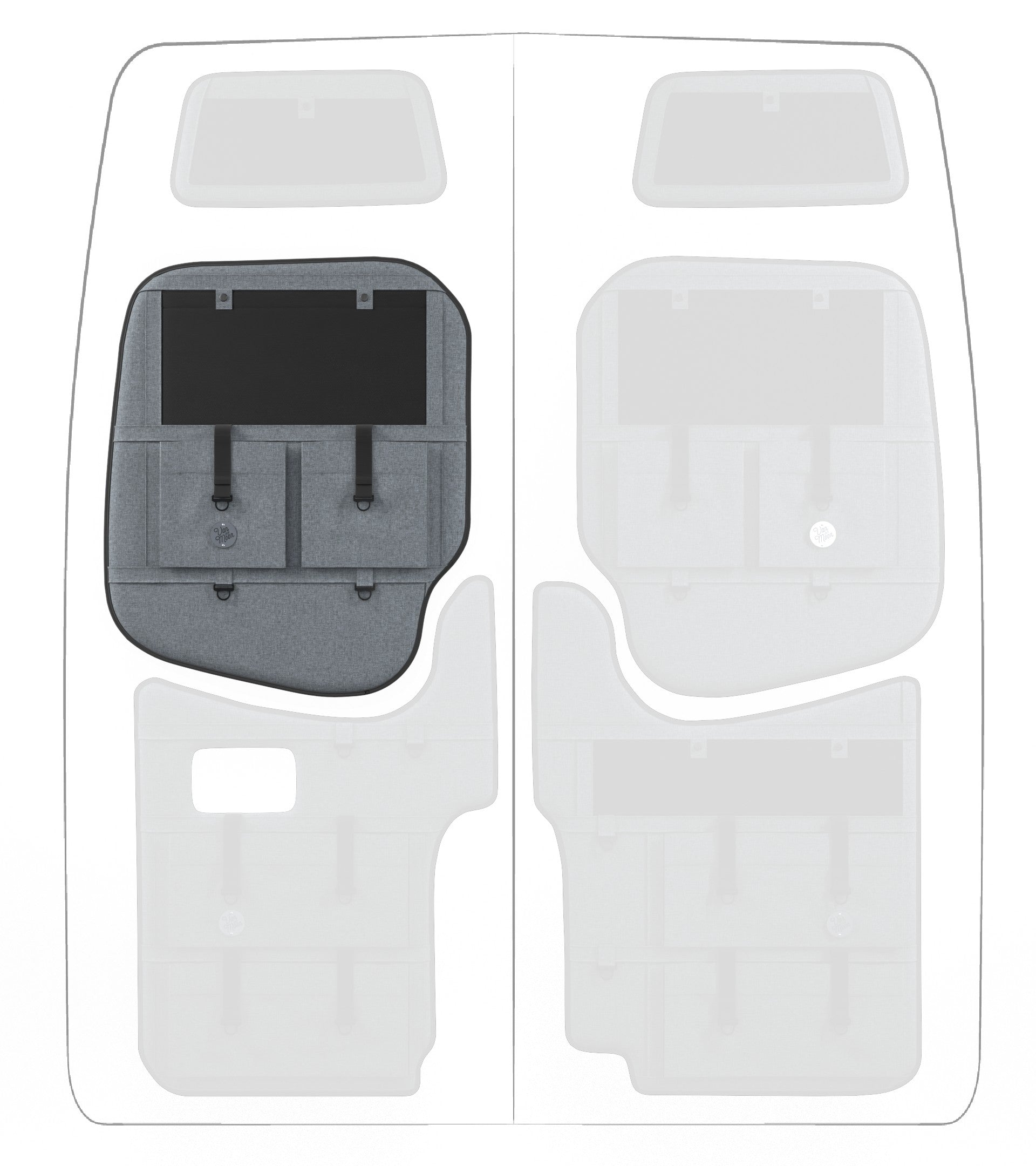 Storage in a van is limited, so why not use your rear doors to expand your space and keep organized? Van Der Moon rear door organizers use a previously ignored space to add functionality and style to your adventure van!