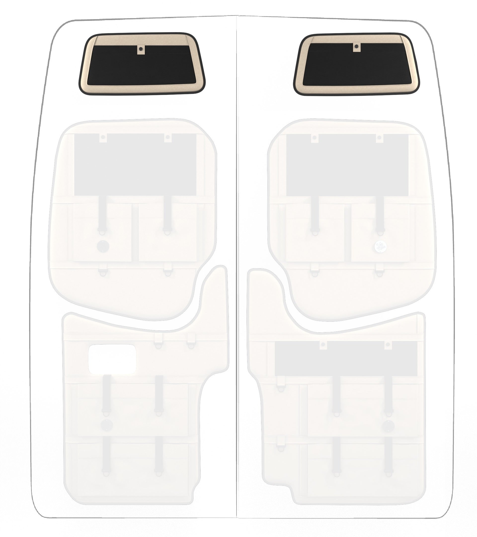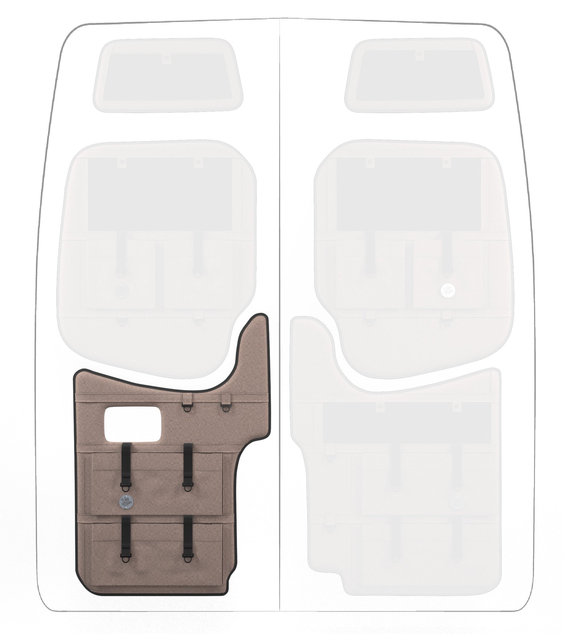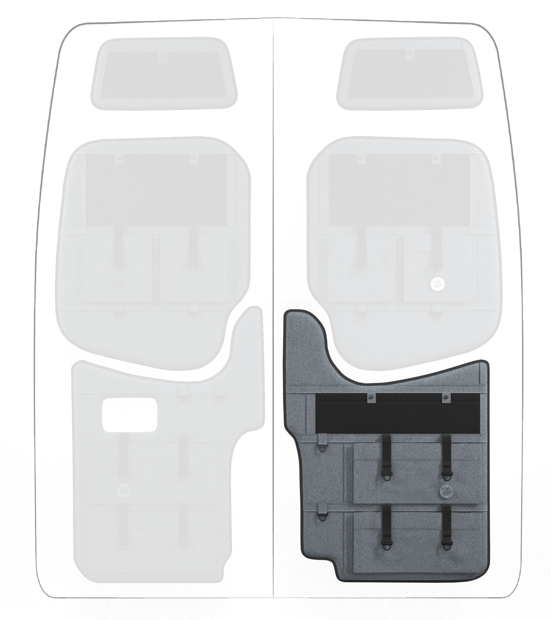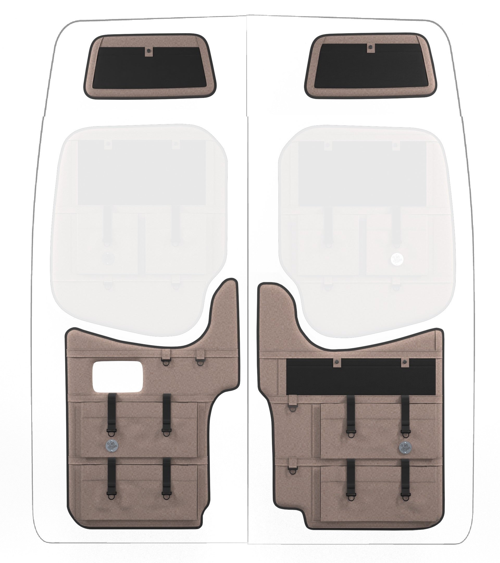 Storage in a van is limited, so why not use your rear doors to expand your space and keep organized? Van Der Moon rear door organizers use a previously ignored space to add functionality and style to your adventure van!