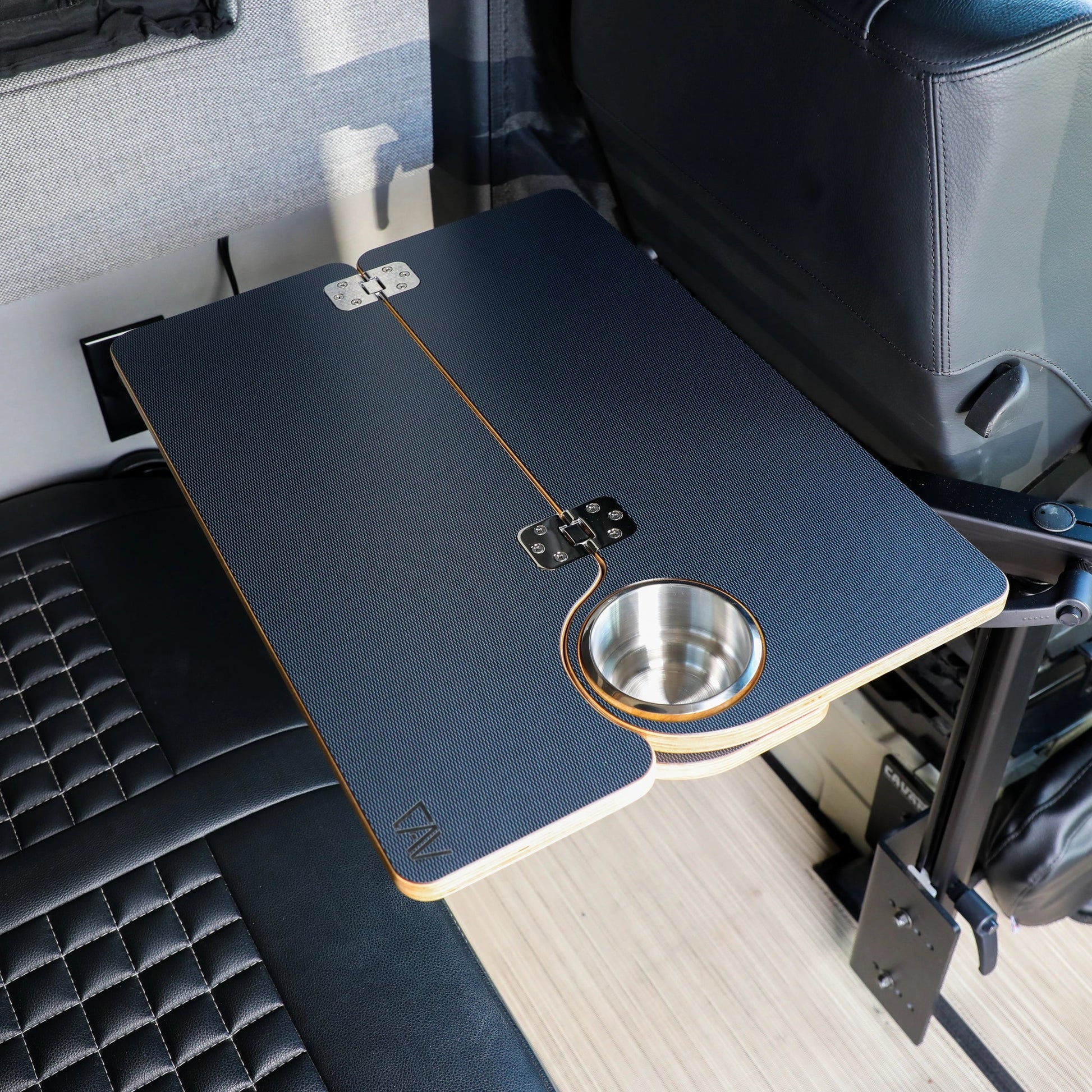 Meet the perfect companion for your van adventures, no matter if you're driving a Van Revel, Storyteller, Jayco, Entegra, or a Sprinter. Our tables are here to add that extra touch of home and functionality to your journeys. Choose from five beautiful finishes, each one crafted to not only look great but to last through all your travels. We know every van is unique, so we've made sure our tables easily fit with both the Lagun system and pedestals, thanks to handy threaded inserts. Whether you're sharing a meal, plotting your next route, or just need a sturdy place to rest your coffee cup, these tables are your go-to.