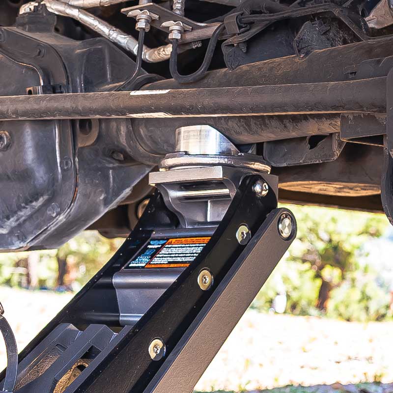 Need to lift a tube frame, axle, or something round? This adaptor made from aerospace grade 6061 T6 aluminum helps you secure things that a flat surface cannot.Fits directly to the jack and interlock just like the extension does. It takes the place of the extension. (Will not interlock on top of our extensions)