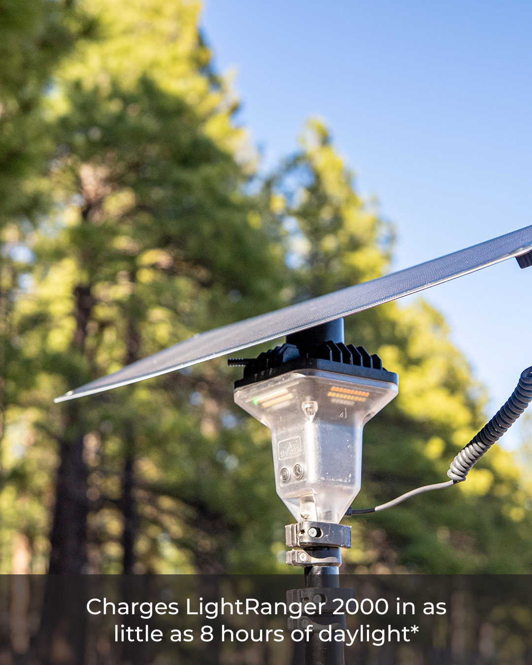 - Fully charges LightRanger 800 or 1200 in as little as 5 hours of daylight*