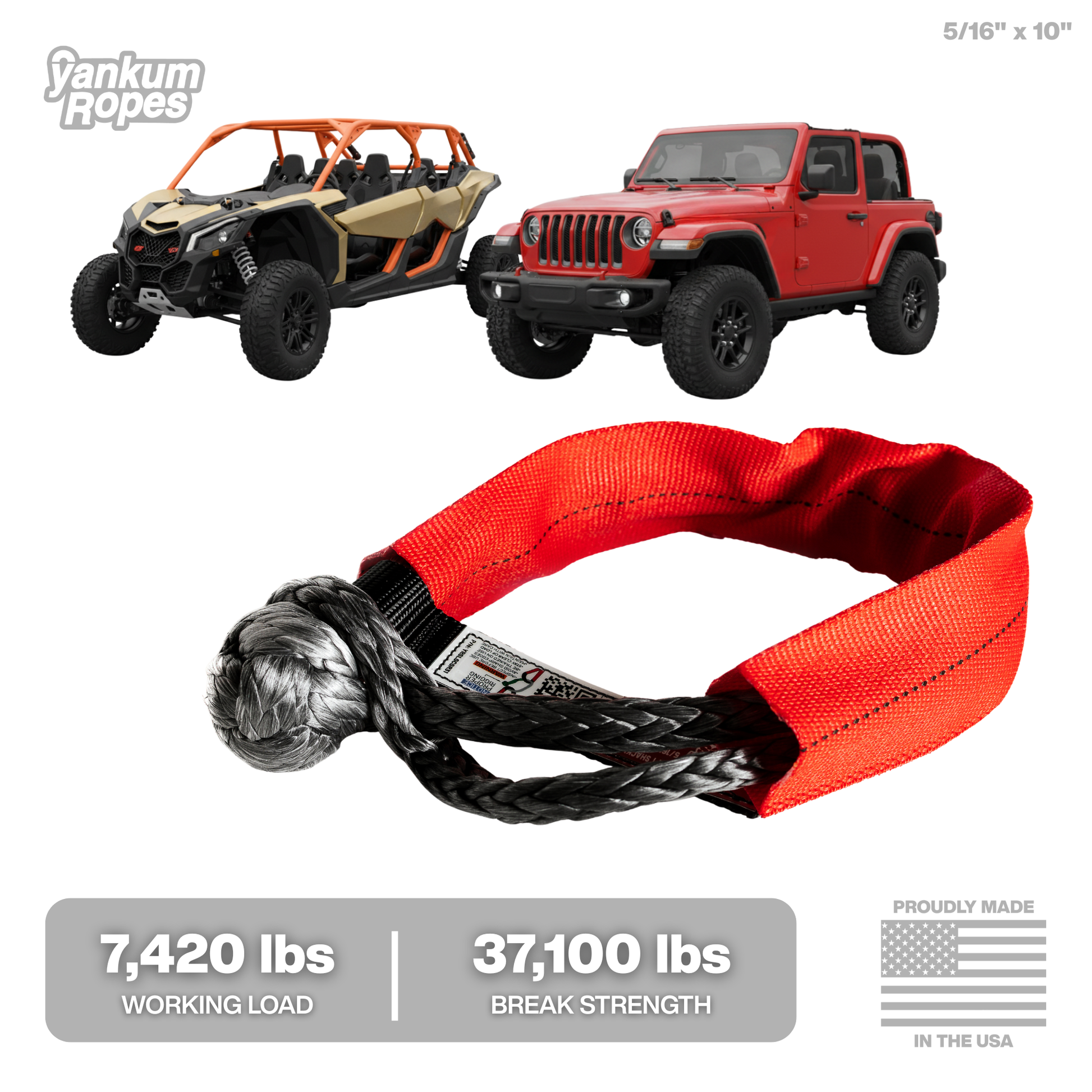 Typically, in recovery, there's a metal D-Shackle (aka Clevis, Bow Shackle, thingumajig, tow point or whatever you call it in your local dialect) that you can attach your recovery rope to. Those suckers are heavy and are usually multiple pieces that get dropped in the mud. Who likes muddy metal parts when you're in need of Recovery?