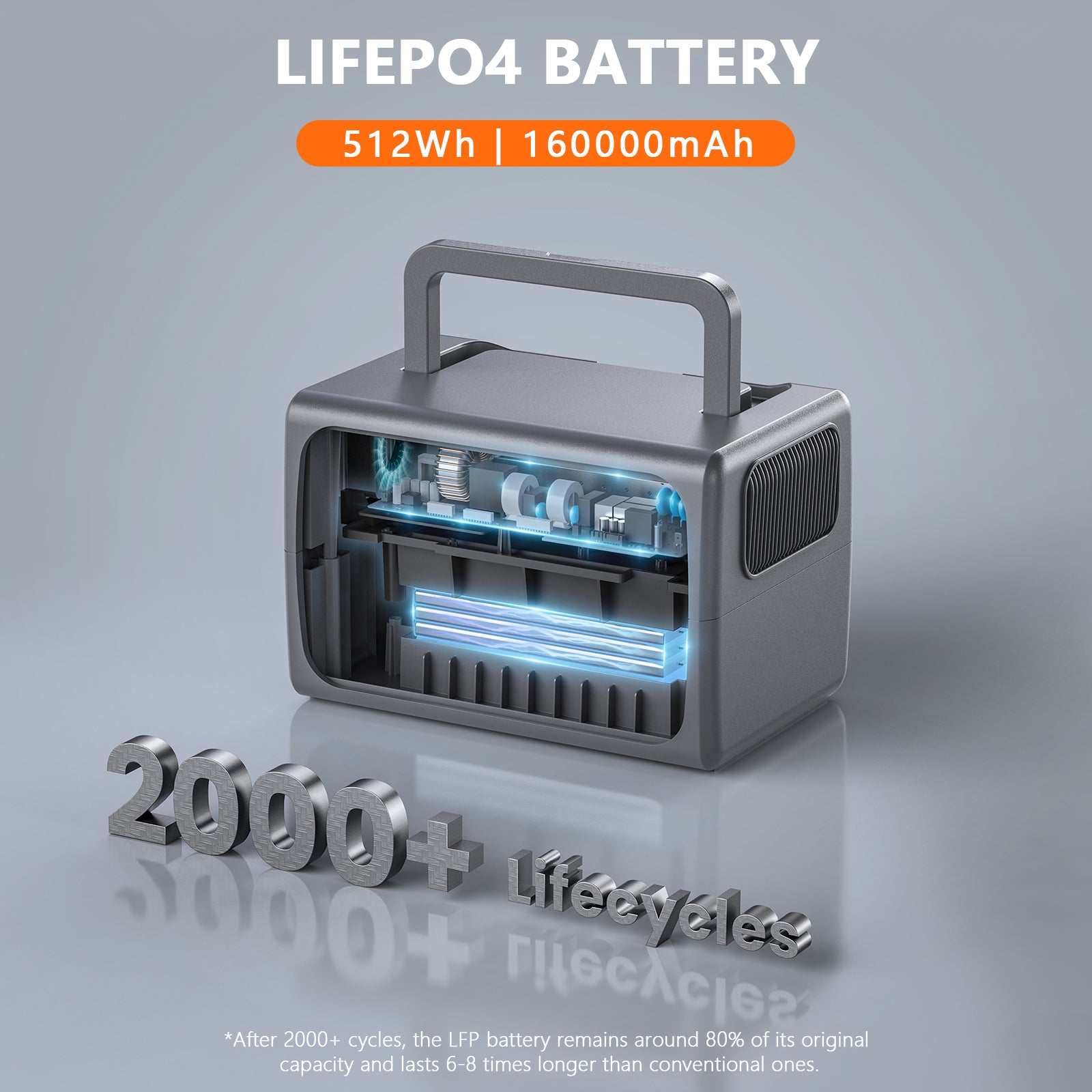 - Features 500W AC, 100W PD, USB-A, DC 5521, and car port.