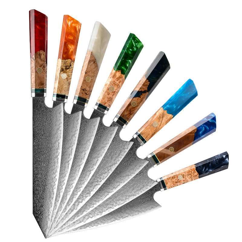 Brilliance Damascus Steel Pro Chef Knife Damascus Steel Kiritsuke Blade with Exotic Olive Wood Burl & Resin Handle, Brass Mosaic Pins, Custom Full Tang Fixed Blade Kitchen Knife with Sheath, Knife Sharpening and Custom Personalization