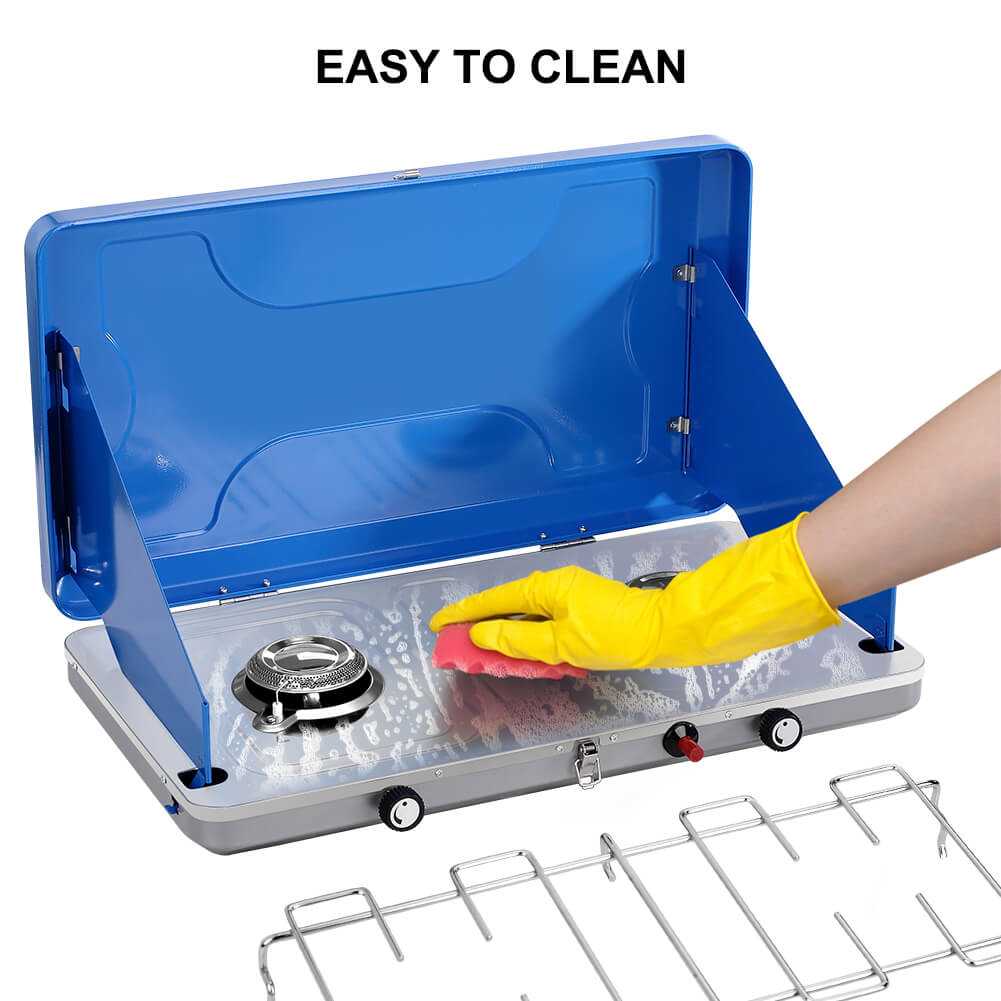 • Wind-blocking Shields - Camping gas stove with wind-blocking shields you could use outdoor cooking even if it's windy suddenly, without any disruption whatsoever