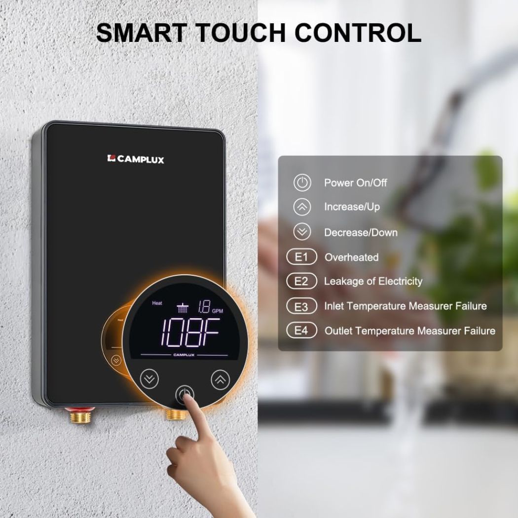 Intelligent Touch Control: Easy to set the temperature, real-time display of water temperature, and inlet water flow. Enjoy instant and endless hot water