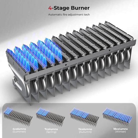 • Low Nitrogen Combustion,Energy Saving. The tankless gas water heater comes with low nitrogen balanced combustion design, v-type stainless steel burner,high heating efficiency up to 89.98 %. The water heater uniform energy efficiency range 0.89-0.92.