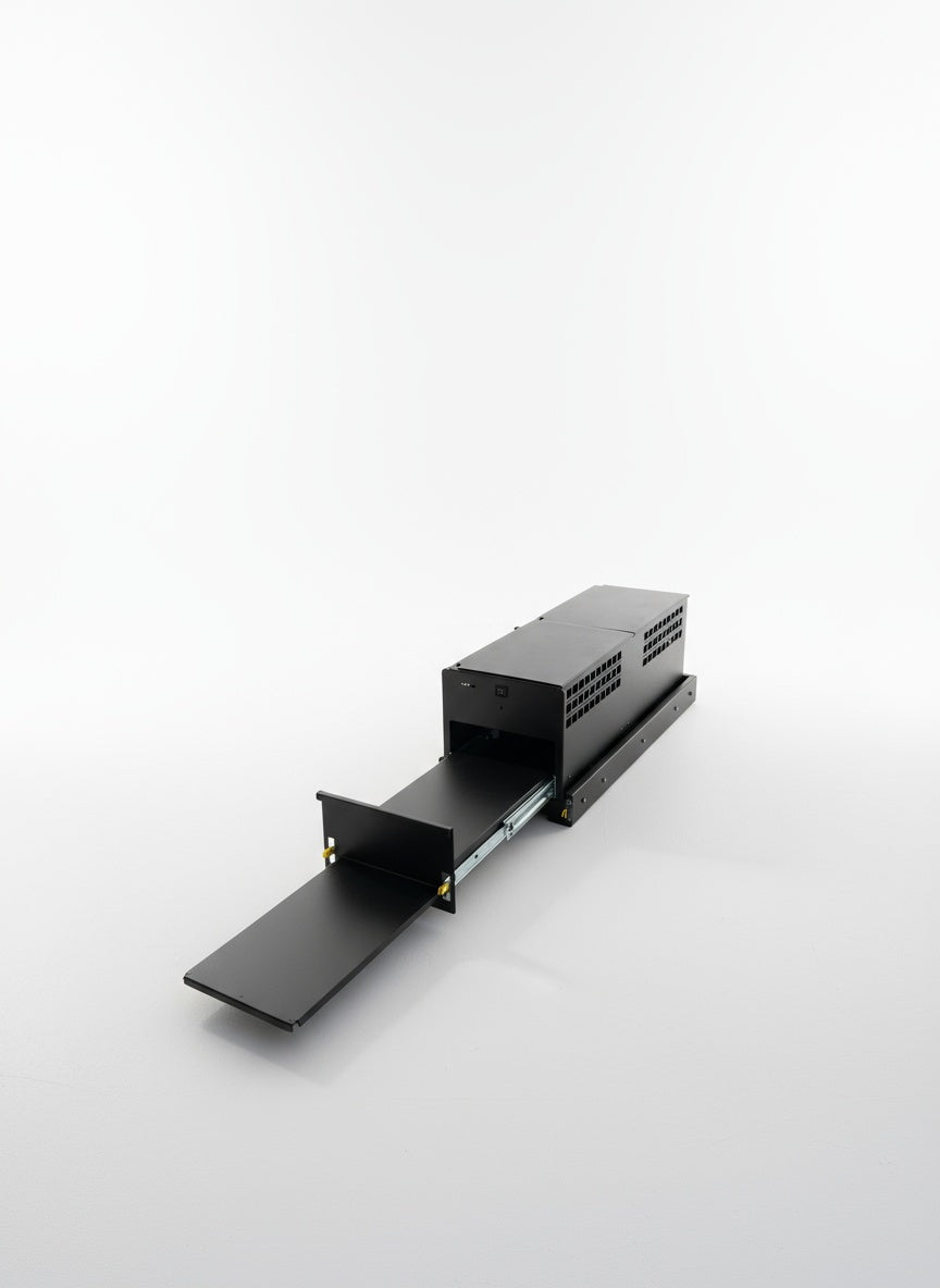 A built-in tray sized for a Coleman cooktop (not included) and a slide-out prep table tray make this an essential addition for van kitchens, compatible with all van models with L-Track in the garage.