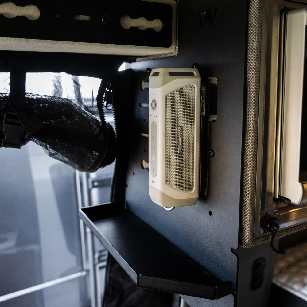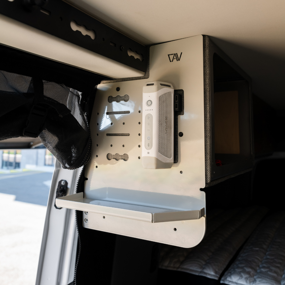The Canyon Adventure Vans Pro Series Kitchen Caddy features a premium 1/8" powder-coated aluminum frame designed to securely mount your accessories and elevate your galley space. Crafted with durability and versatility in mind, this caddy integrates flawlessly with your Storyteller setup.