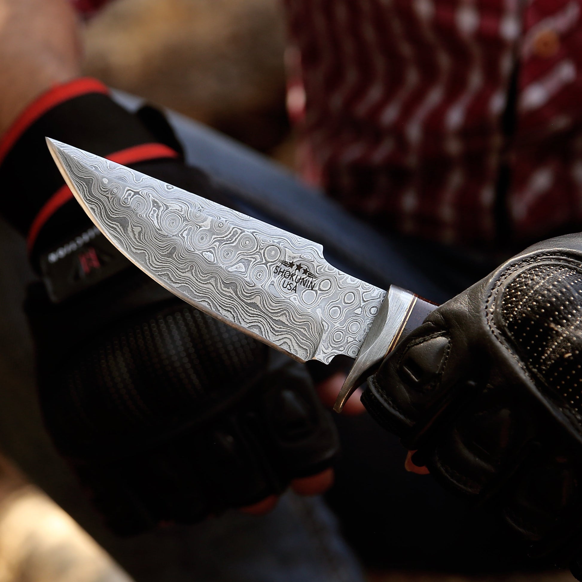 Damascus steel has outstanding properties such as strength and hardness. We amplify its properties by oil quenching it at 2100 deg F to cool it down fast and we do it twice to make sure it’s hard to its inner core to withstand any kind of work you may put it to use. It achieves a 58 or higher HRC on the Rockwell Scale.