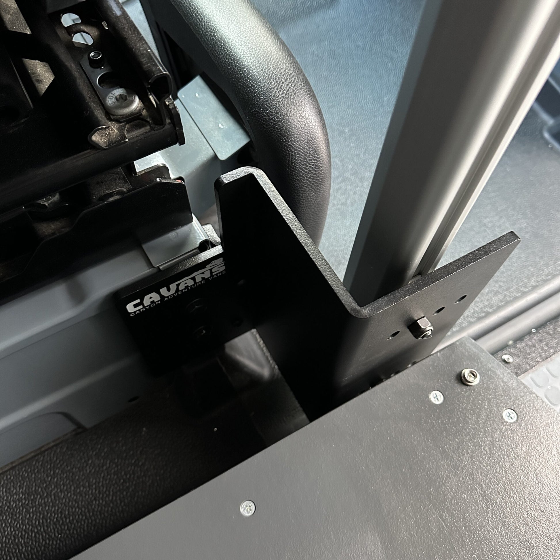 The CTB is a versatile bracket that mounts to the driver's side seat base in your Mercedes Sprinter Van. It allows you to attach a Lagun system and table, providing a convenient table setup that swivels out of the way when needed. Made of heavy-duty steel in the USA, it offers multiple mounting options and easy installation, enabling seat rotation without removing your Console Table. Please note that it does not include the Lagun System or Table-Top.