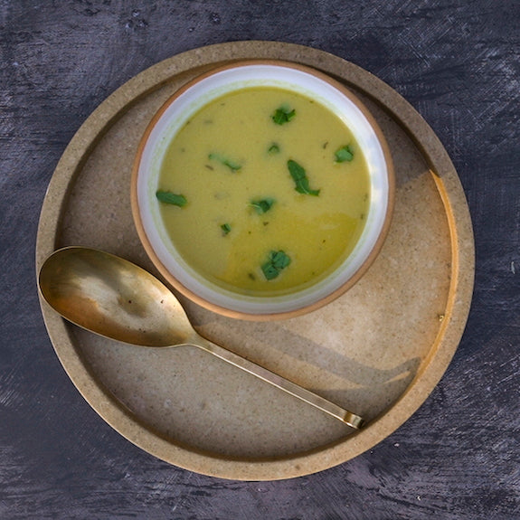 Our Curried Cauliflower Soup is an anti-inflammatory powerhouse boasting antioxidants, vitamin C, and curcumin -- the active inflammatory-reducing compound found in turmeric. Cauliflower is also featured for its calming and immune-strengthening effects. Flavored with Ayurvedic spices, it is finished with cilantro and a pungent helping of lemon for glucose assistance. Fresh turmeric root and black pepper round out the soup's properties to alleviate inflammation.