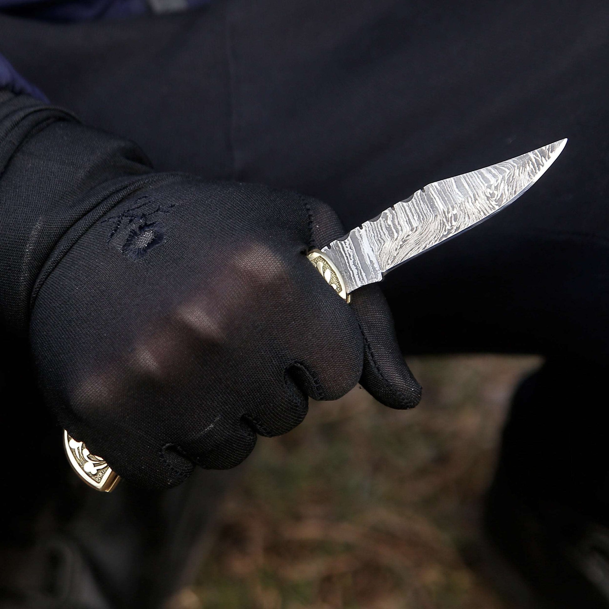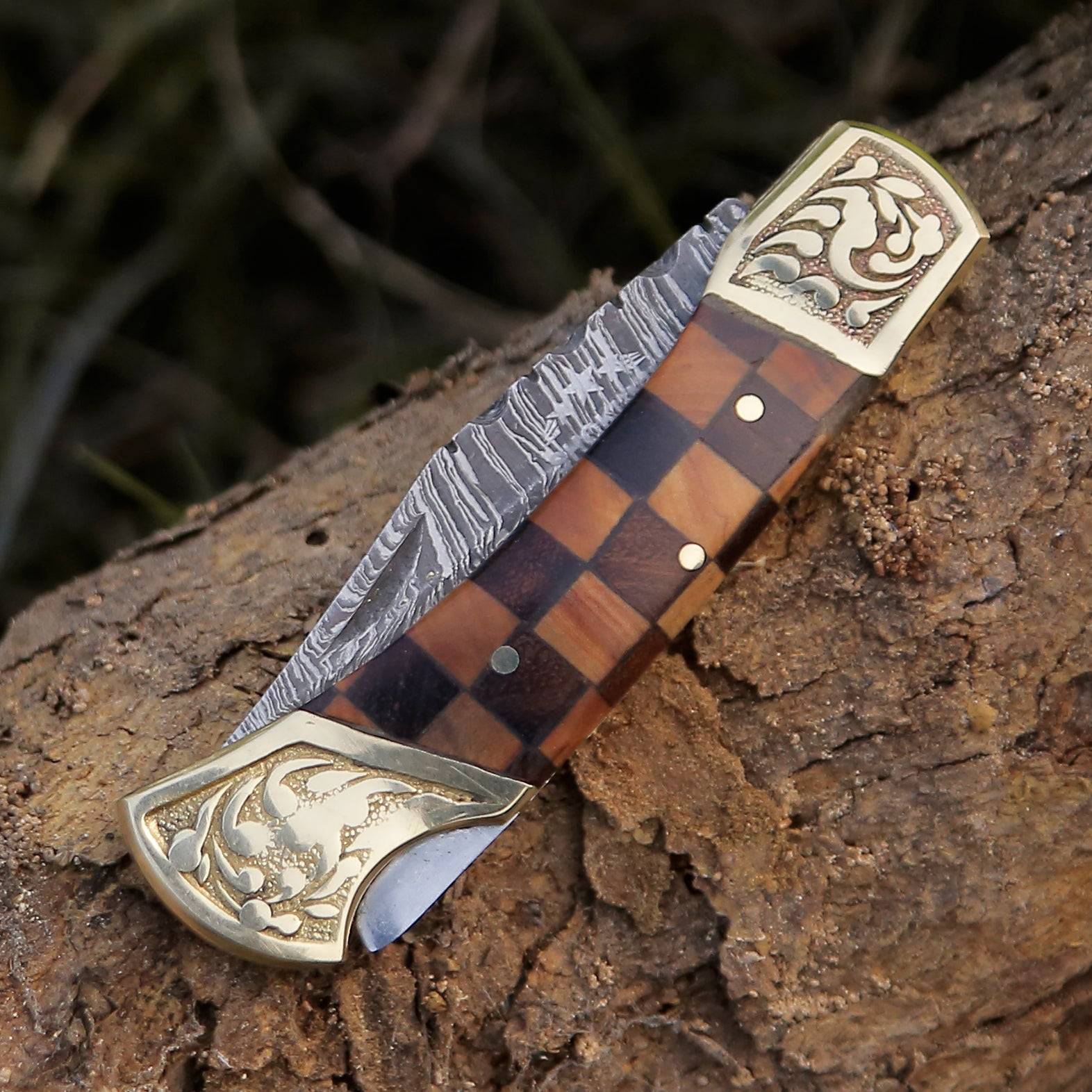 The elegant handle is made using pakkawood & carved brass scales. It has been sealed to prevent cracking or drying and preserve the handle for lifetime comes with under lock folding mechanism.
