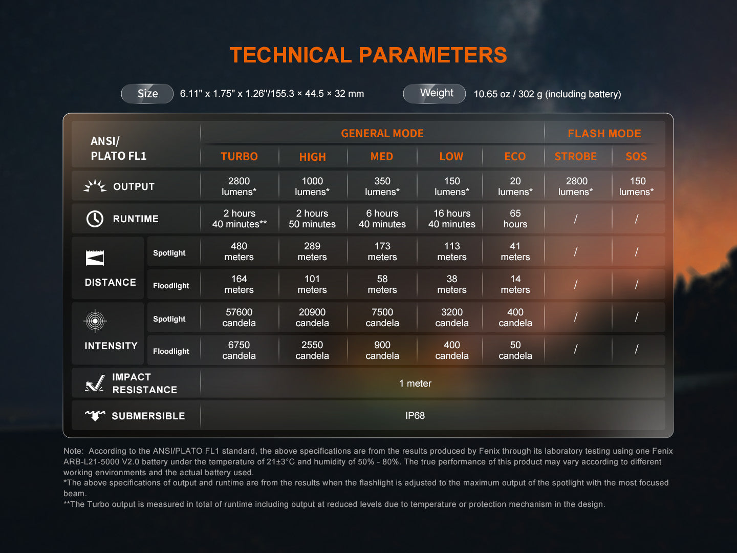 - Max Output: 2,800 lumens (Turbo)