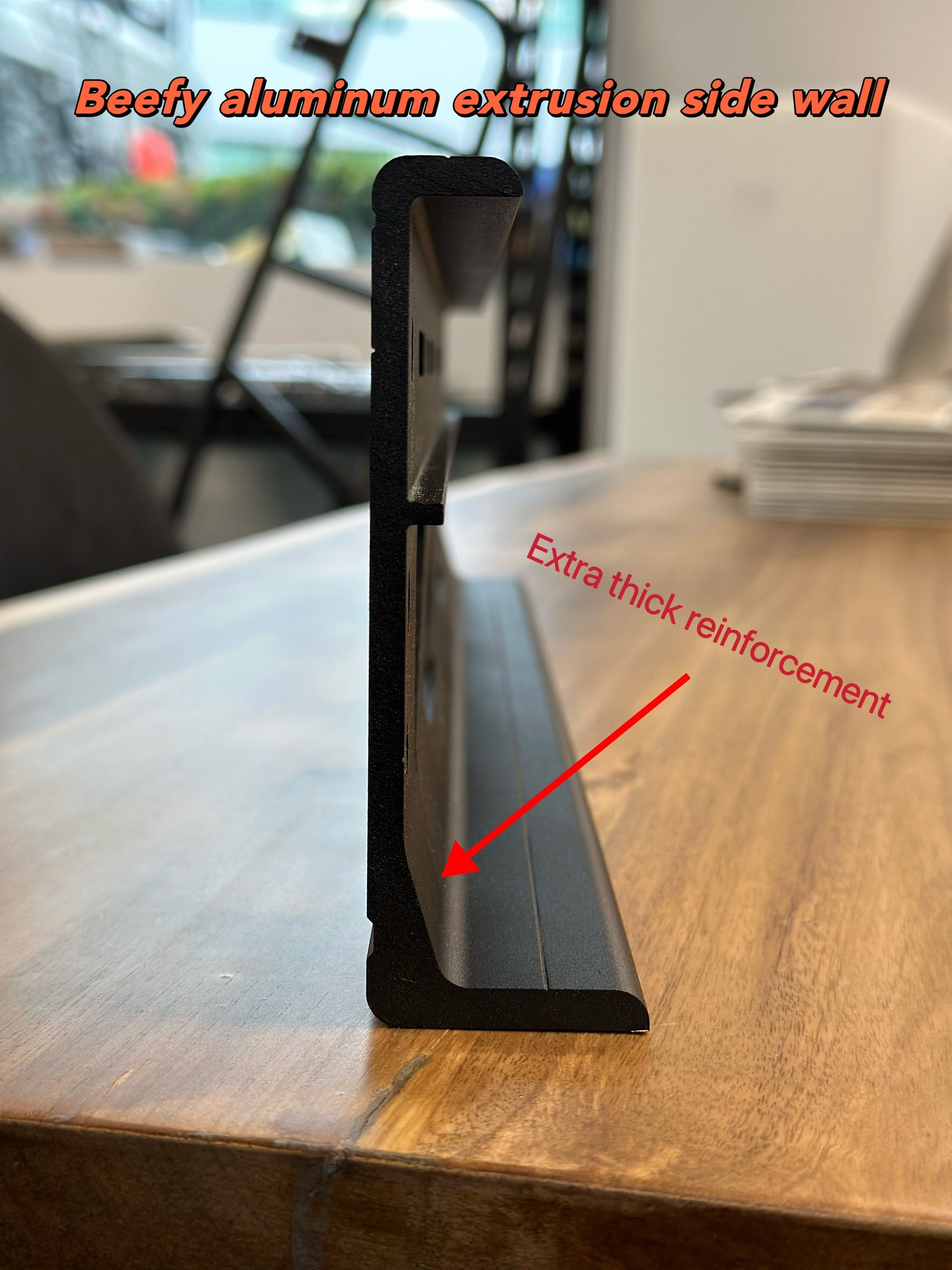 • One piece aluminum side profiles with double thick corners for superior strength and rigidity