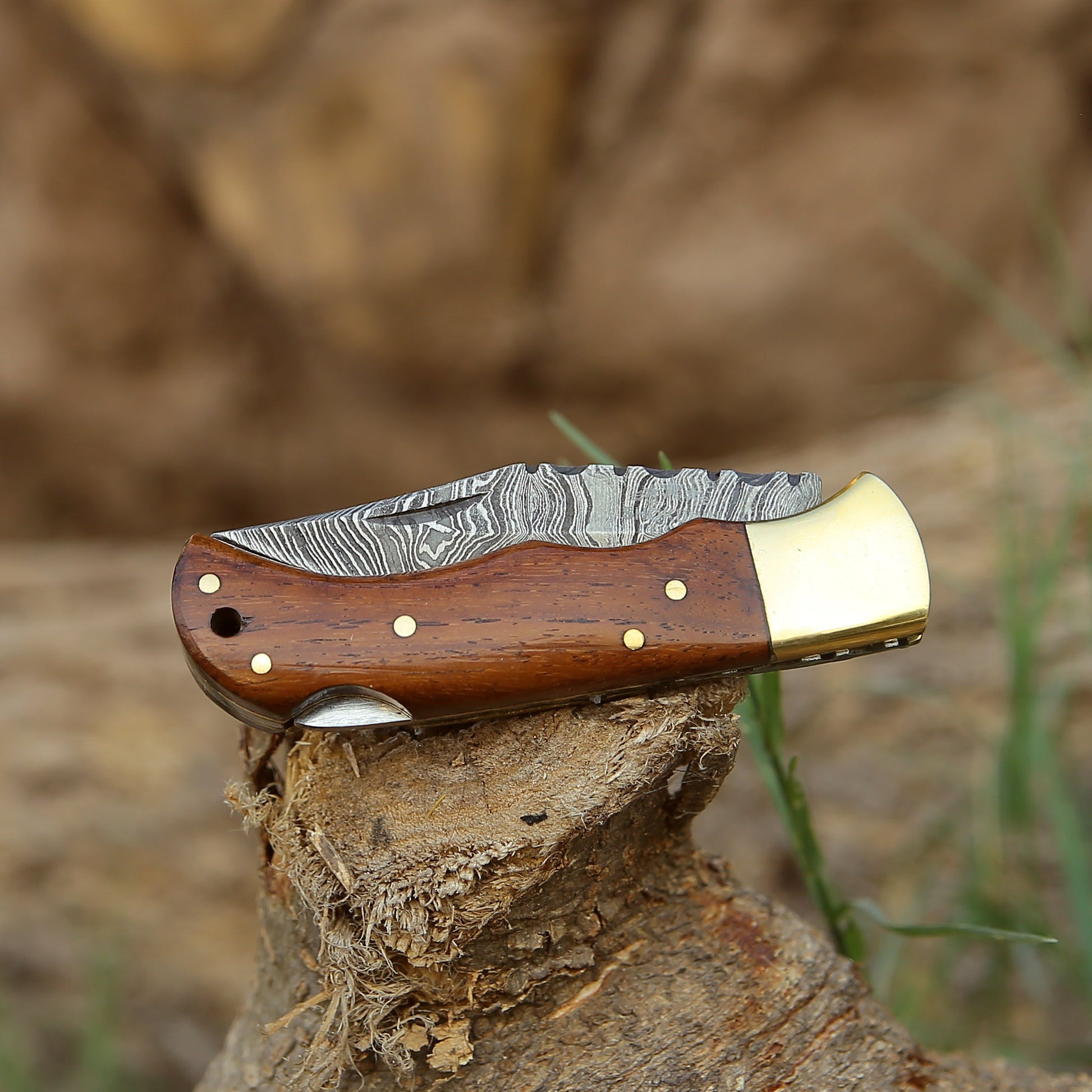 The elegant handle is made using exotic rosewood. It has been sealed to prevent cracking or drying, preserving the handle for a lifetime. The knife comes with a lock-back folding mechanism.