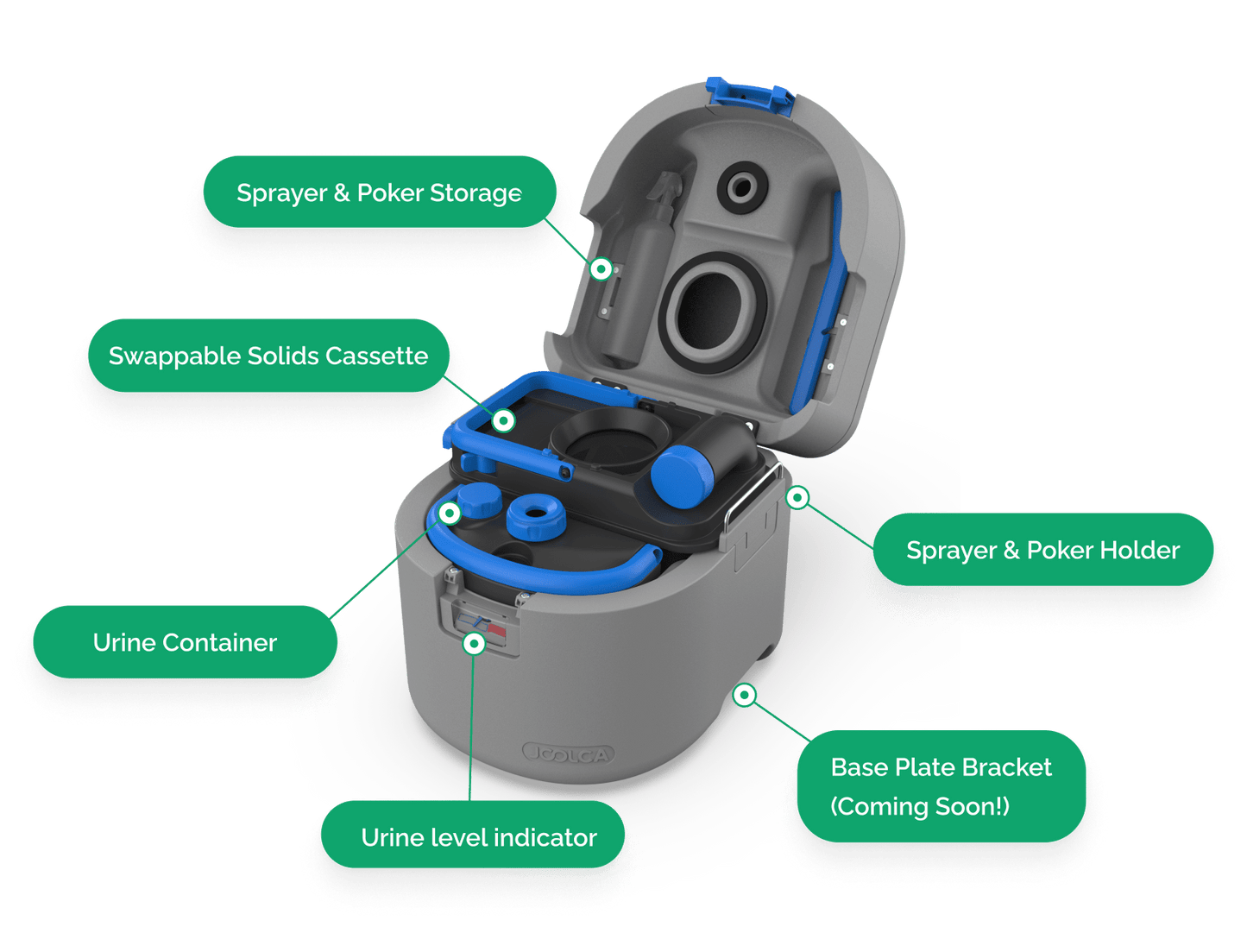 Separating solids from liquids, the Joolca GottaGo Toilet gives you all the options. It’s superior to other chemical toilets in that it doesn’t fill up the solids tank with urine and flush water. It lets you use a bag when there are no dump points. It can be used as a composting toilet. It’s airtight and leakproof, doing away with the smell. And it’s a whole lot easier and safer to empty than a standard camping toilet.