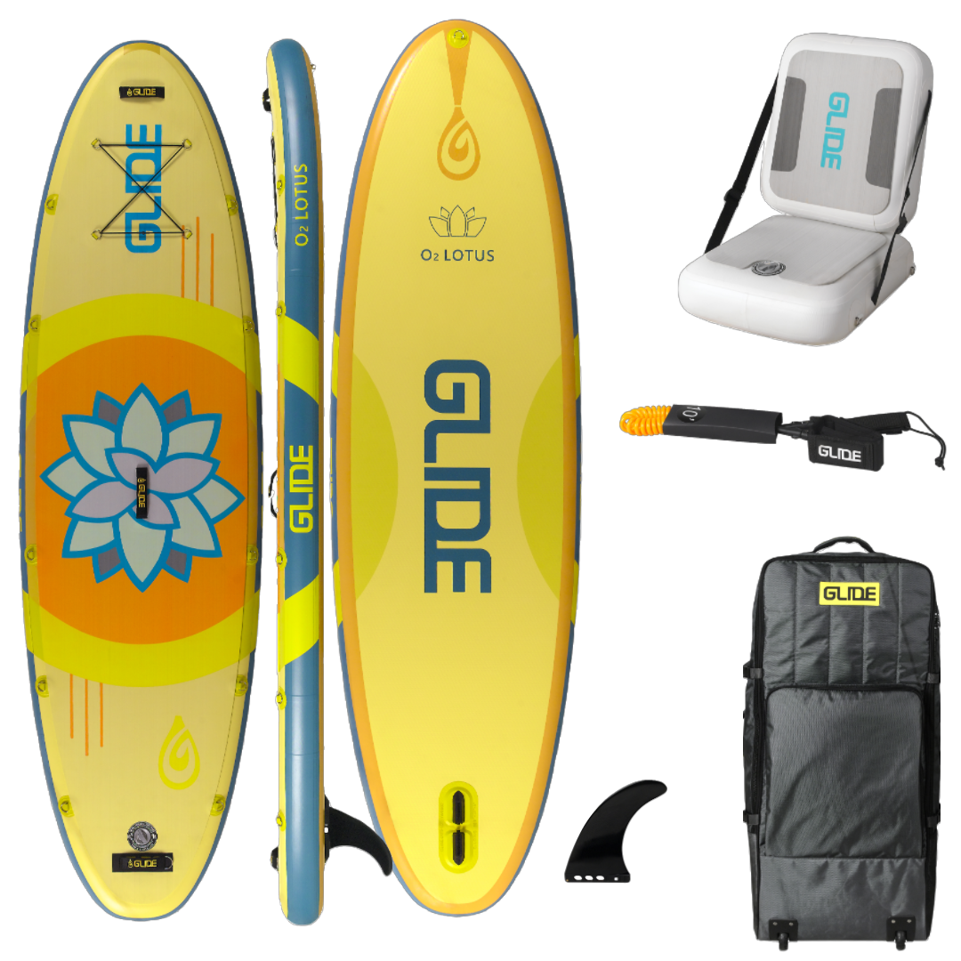 The GLIDE Lotus 3.0 inflatable Yoga Paddleboard is designed to bring balance and comfort to your on-water yoga practice. With its spacious deck and lightweight design, it’s the ultimate board for anyone looking to flow, stretch, and relax surrounded by nature’s beauty.