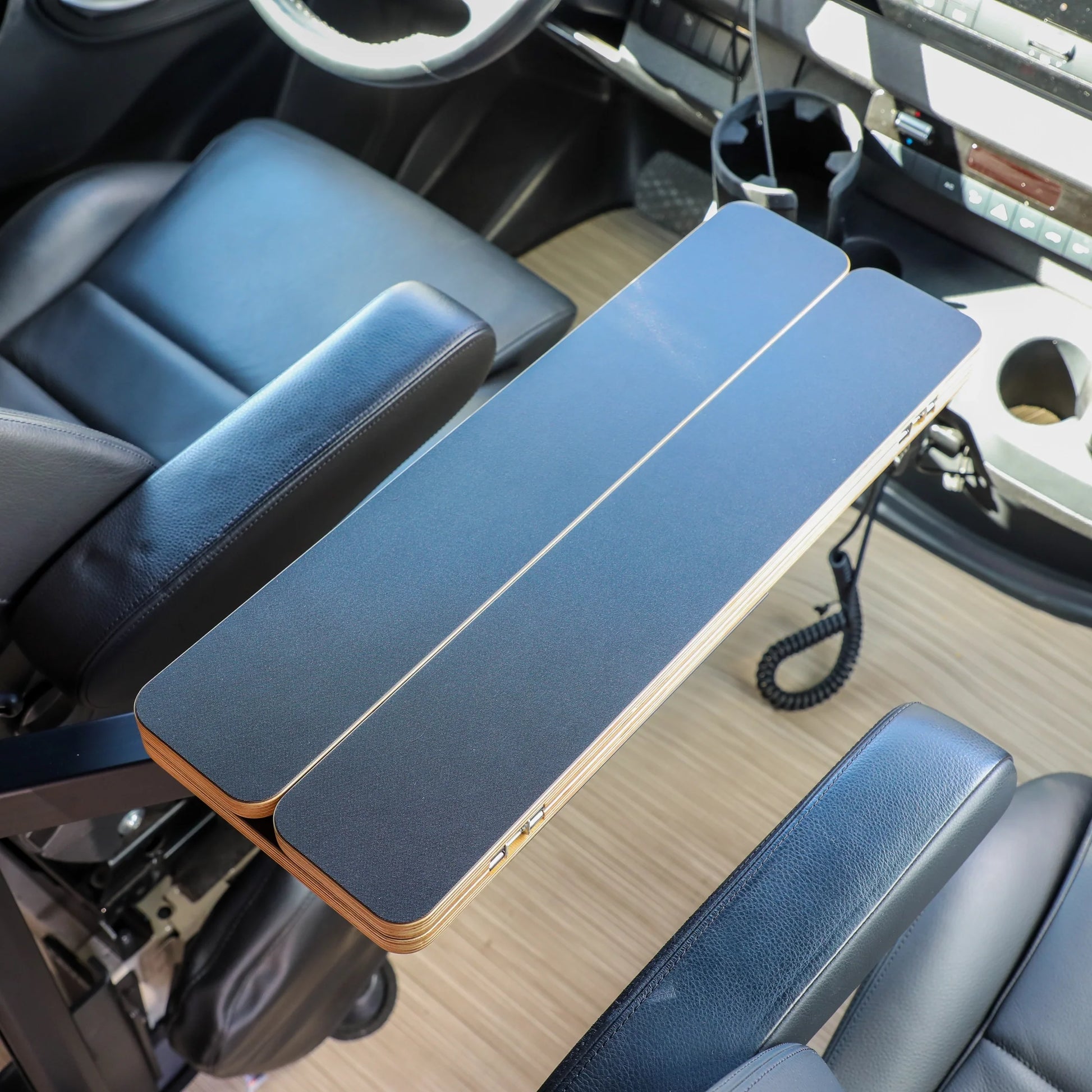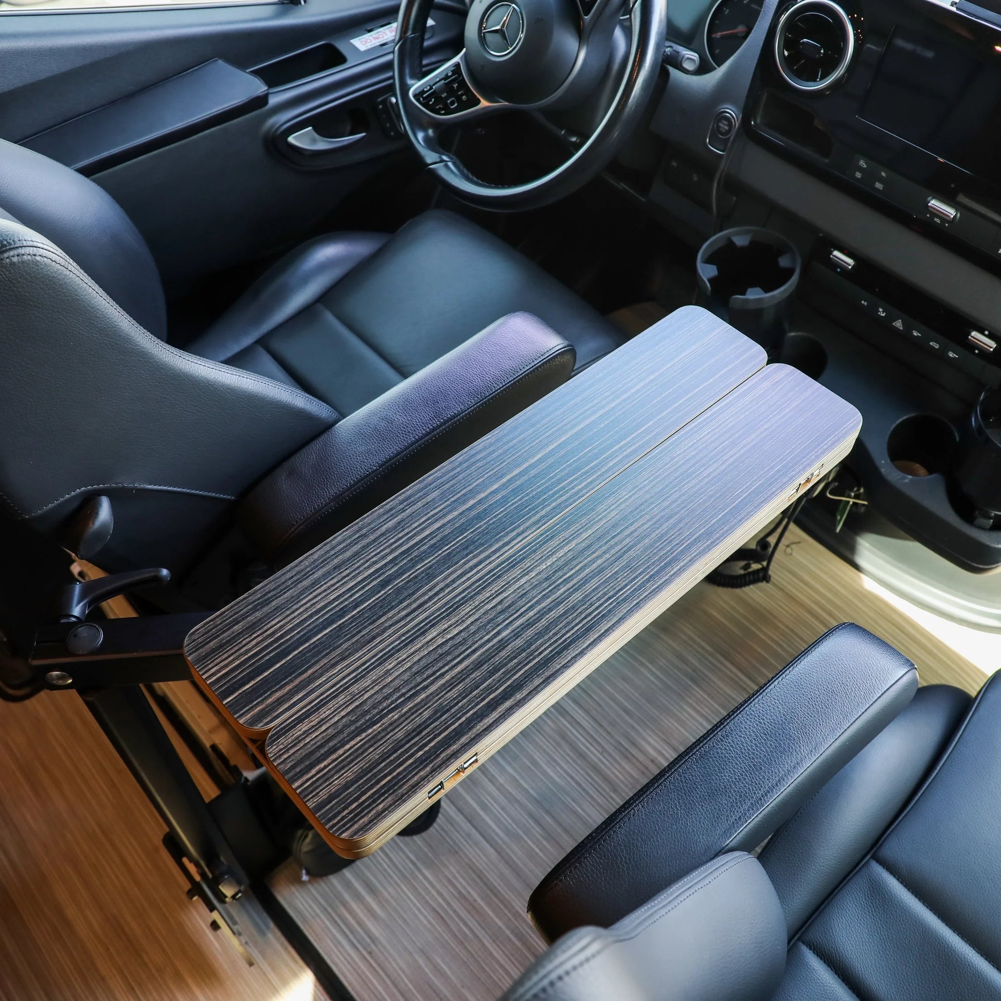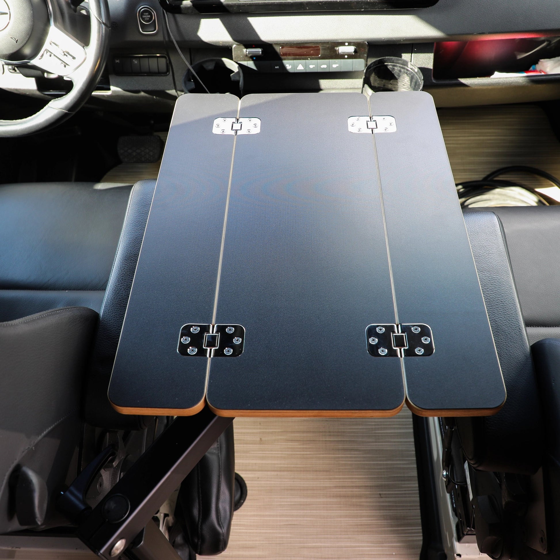 Meet the perfect companion for your van adventures, no matter if you're driving a Van Revel, Storyteller, Jayco, Entegra, or a Sprinter. Our tables are here to add that extra touch of home and functionality to your journeys. Choose from five beautiful finishes, each one crafted to not only look great but to last through all your travels. We know every van is unique, so we've made sure our tables easily fit with both the Lagun system and pedestals, thanks to handy threaded inserts. Whether you're sharing a meal, plotting your next route, or just need a sturdy place to rest your coffee cup, these tables are your go-to.