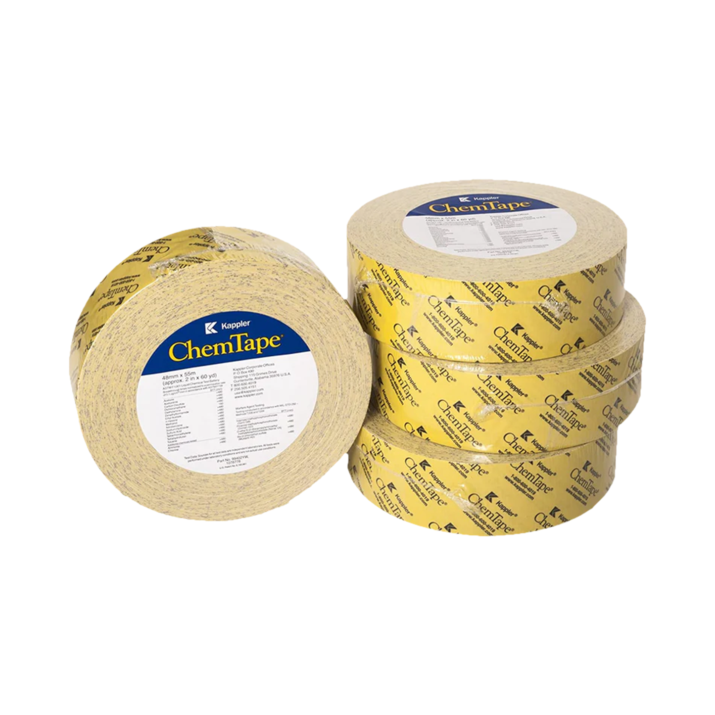 Store Kappler ChemTape® in a cool, dry place away from direct sunlight. The ideal storage temperature is 73ºF (23ºC). According to the manufacturer, there is no evidence that ChemTape® loses its protective characteristics, including adhesion, when stored in ideal conditions. ChemTape® may be stored at temperatures of up to 120ºF (49ºC). Note that high temperatures may lead to faster degradation.
