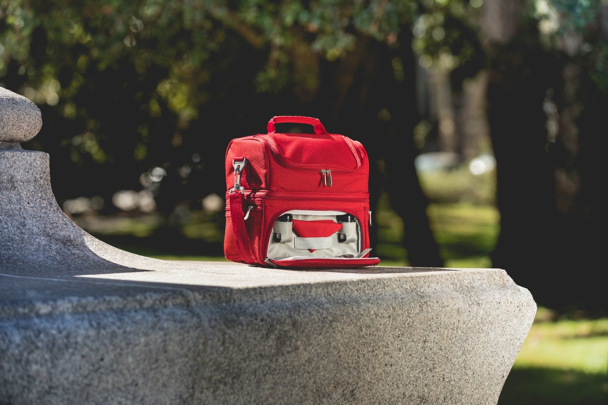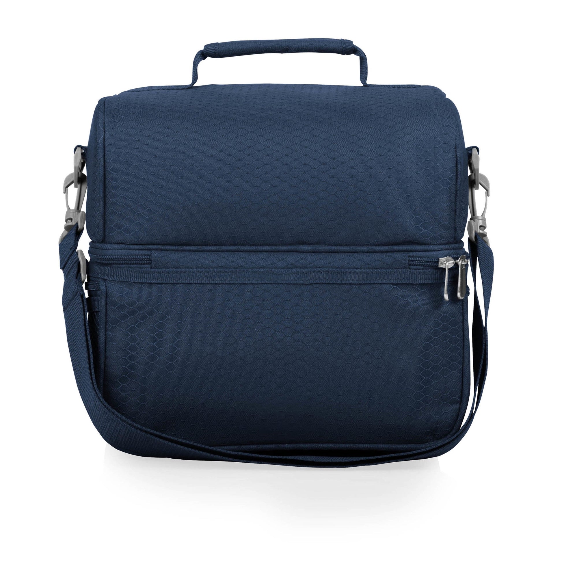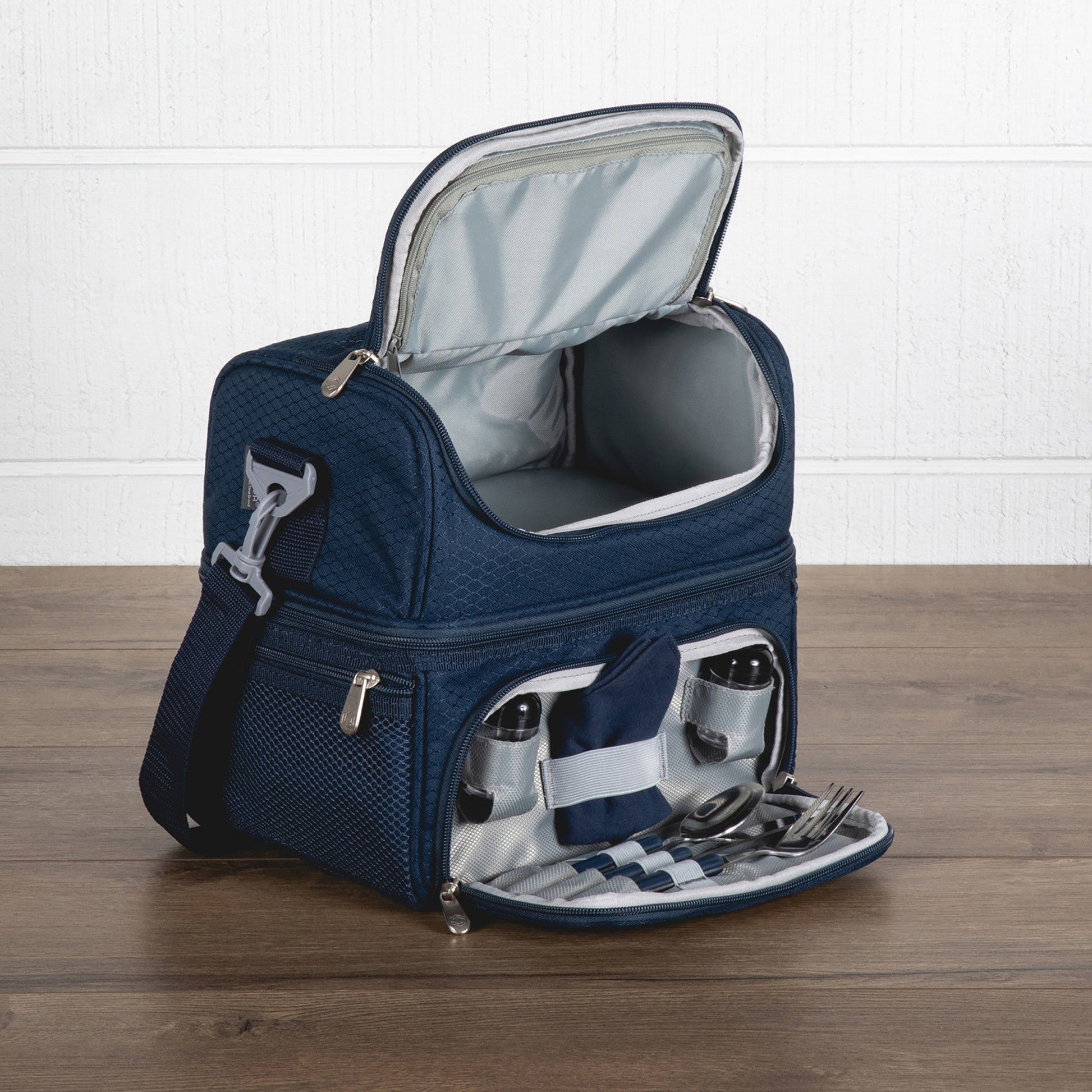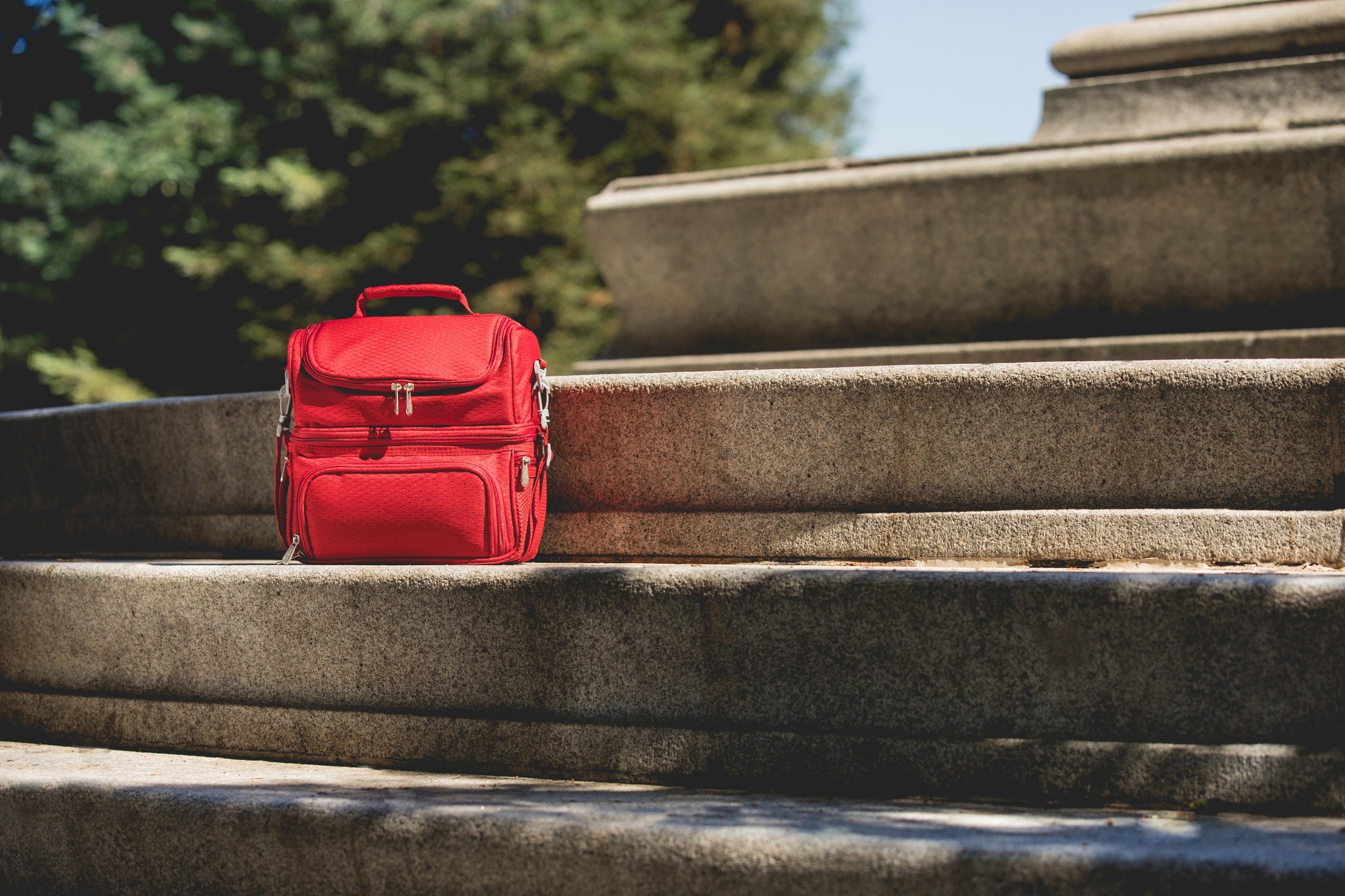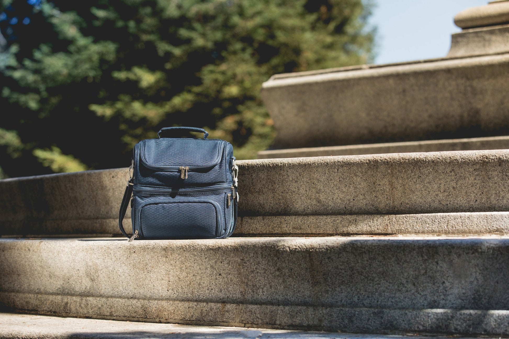 The Pranzo Lunch Bag Cooler with Utensils is a high quality insulated lunch cooler for discerning men and women - after all, no matter your job, you gotta have lunch box! Level up your lunch with this insulated work cooler / lunch bag with top and bottom compartments to separate cold foods from warm/room temperature items. This polyester 8-can-capacity lunch cooler bag with an adjustable shoulder strap and grab-and-go handle also has a secret compartment containing stainless steel silverware, clear plastic salt & pepper shakers, and a 100% cotton napkin. Zippered mesh pockets on each side provide the perfect space for keys, wallets, or other essentials. The Pranzo is the all in one lunch box made for adults!