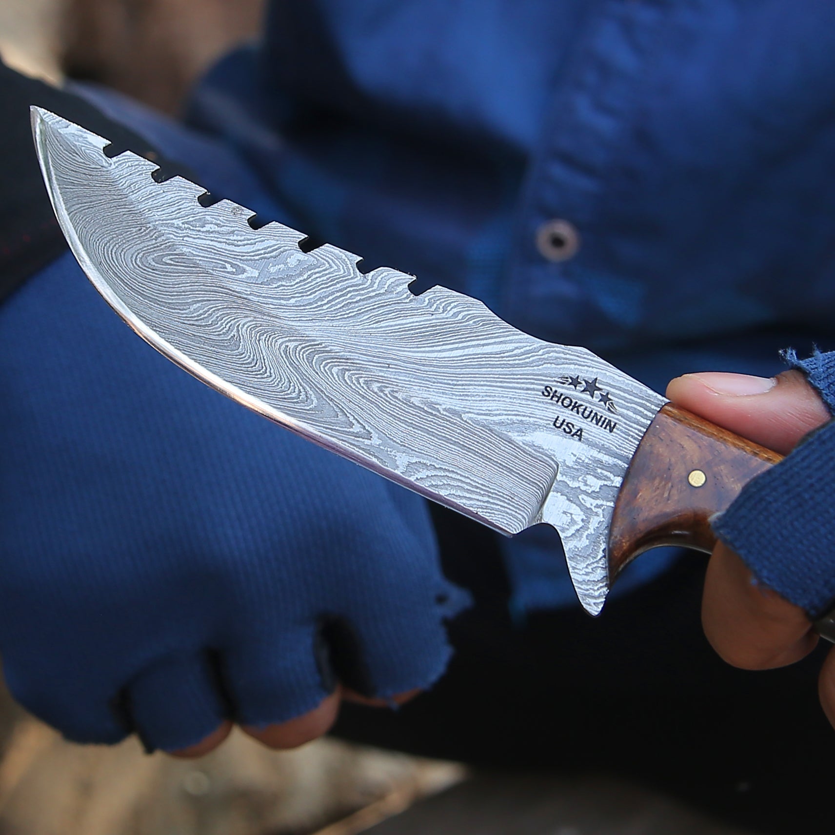 Damascus steel has outstanding properties such as strength and hardness. We amplify its properties by oil quenching it at 2100 deg F to cool it down fast and we do it twice to make sure it’s hard to its inner core to withstand any kind of work you may put it to use. It achieves a 58 or higher HRC on the Rockwell Scale.
