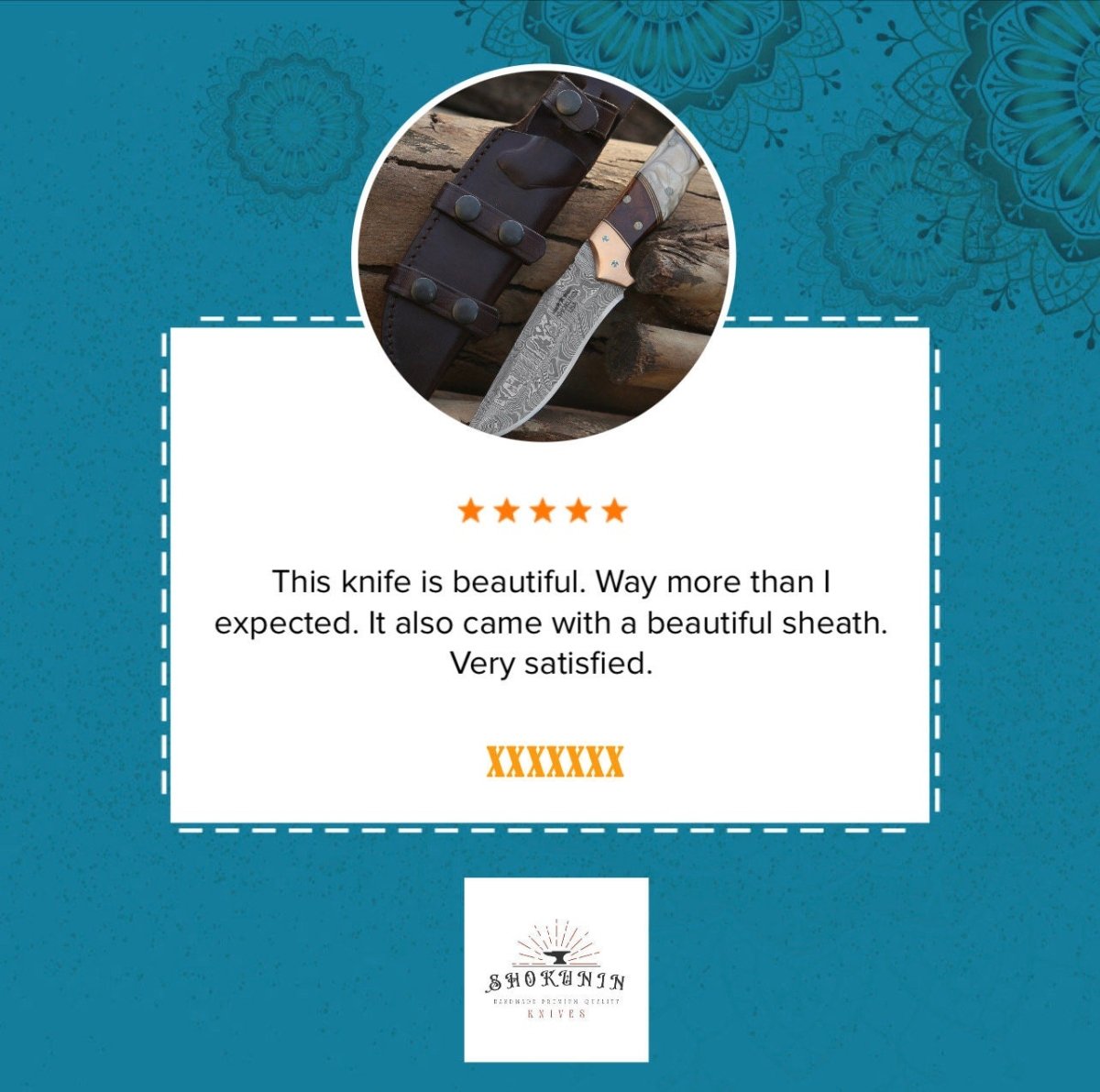 The blade is carefully made by, combining 1095 & 15n20 Steel through layering, welding, and hammering. This process makes each blade have its own special design, like a fingerprint. Each knife is a unique work of art.