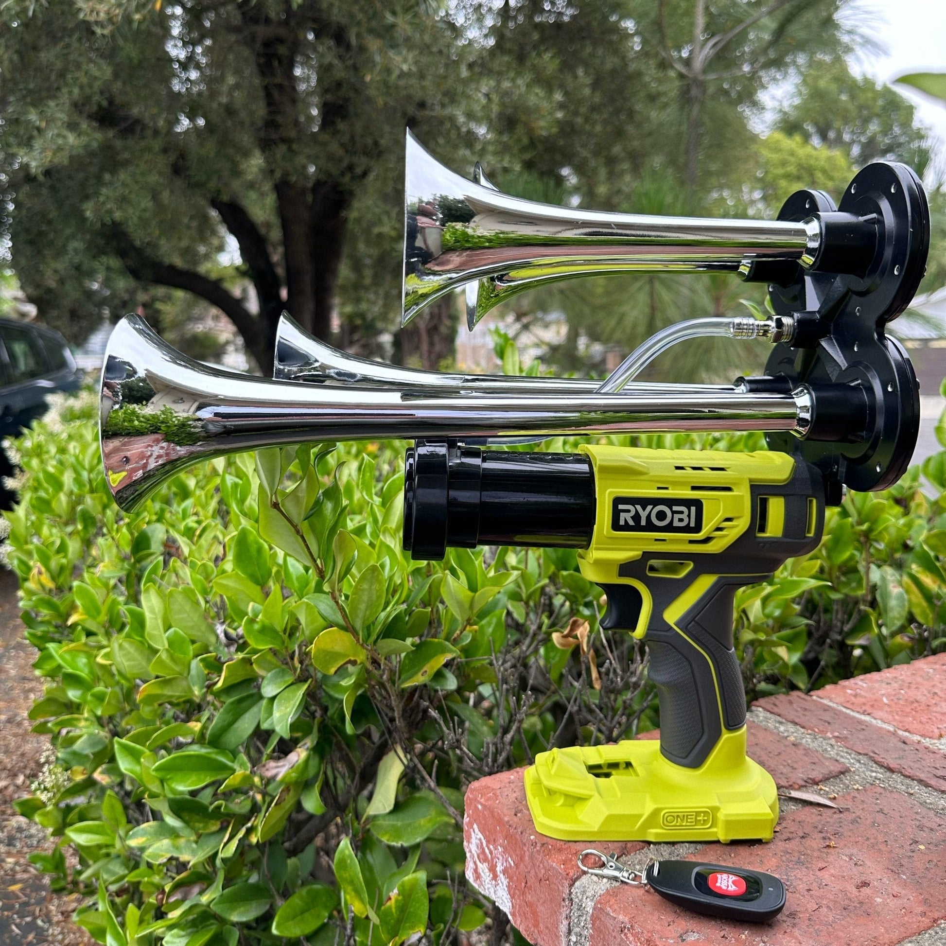 The train horn ryobi is not just a loud air horn, it's a unique and creative tool that can be used in a variety of situations. Whether you need to signal workers, alert others in case of an emergency, or just make some noise at a sporting event, this cordless and versatile air horn has got you covered. Get yours today!