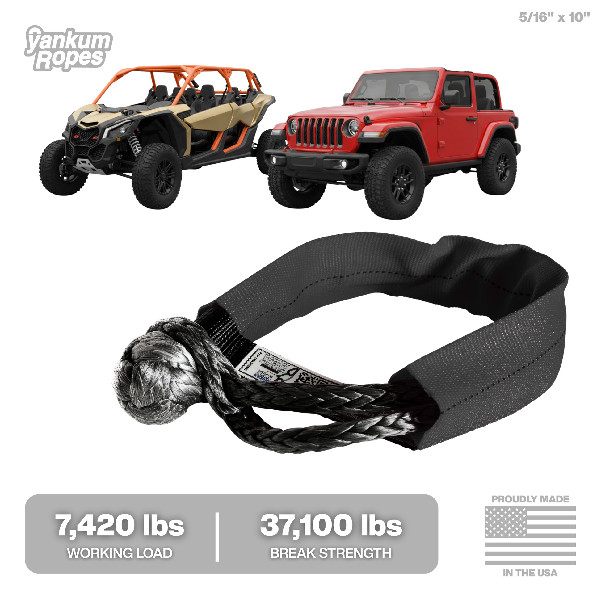 Typically, in recovery, there's a metal D-Shackle (aka Clevis, Bow Shackle, thingumajig, tow point or whatever you call it in your local dialect) that you can attach your recovery rope to. Those suckers are heavy and are usually multiple pieces that get dropped in the mud. Who likes muddy metal parts when you're in need of Recovery?